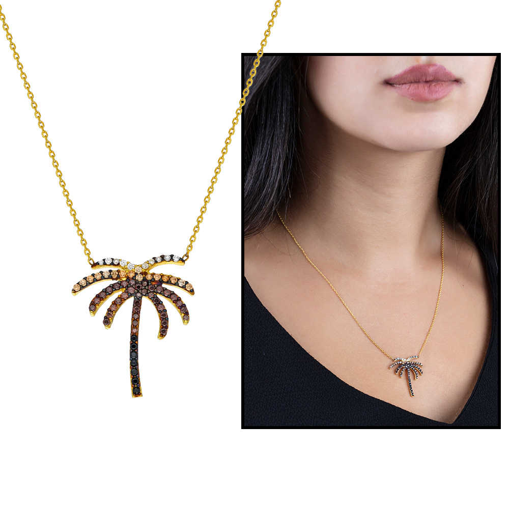 Zirkon Taşlı Palmiye Ağacı Tasarım 925 Ayar Gümüş Bayan Kolye - 1
