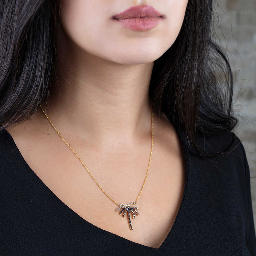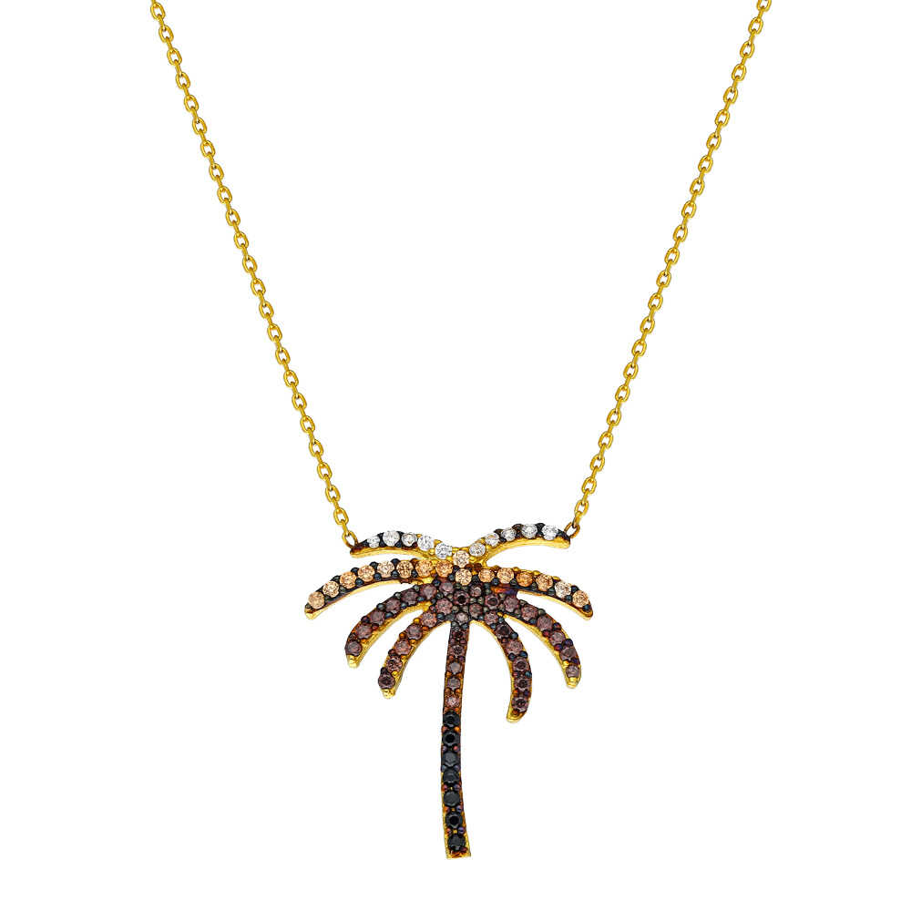 Zirkon Taşlı Palmiye Ağacı Tasarım 925 Ayar Gümüş Bayan Kolye