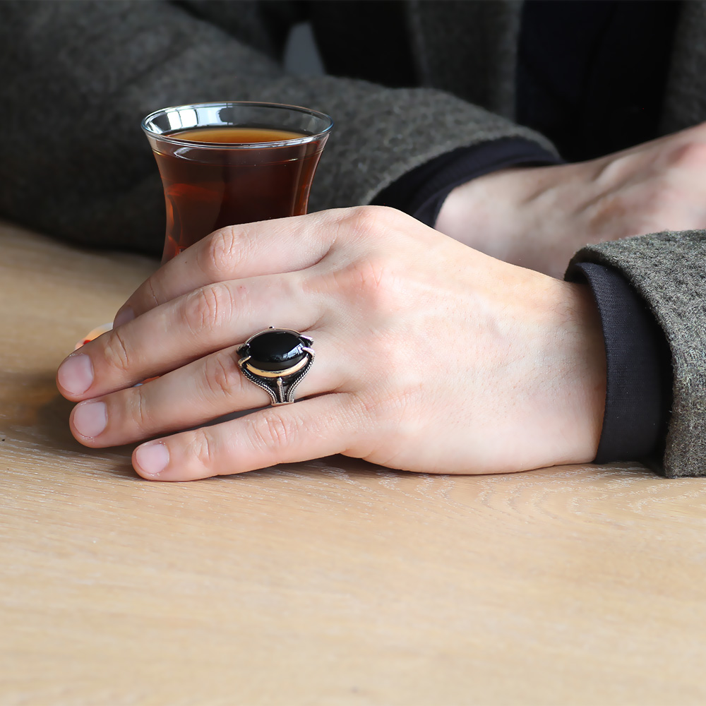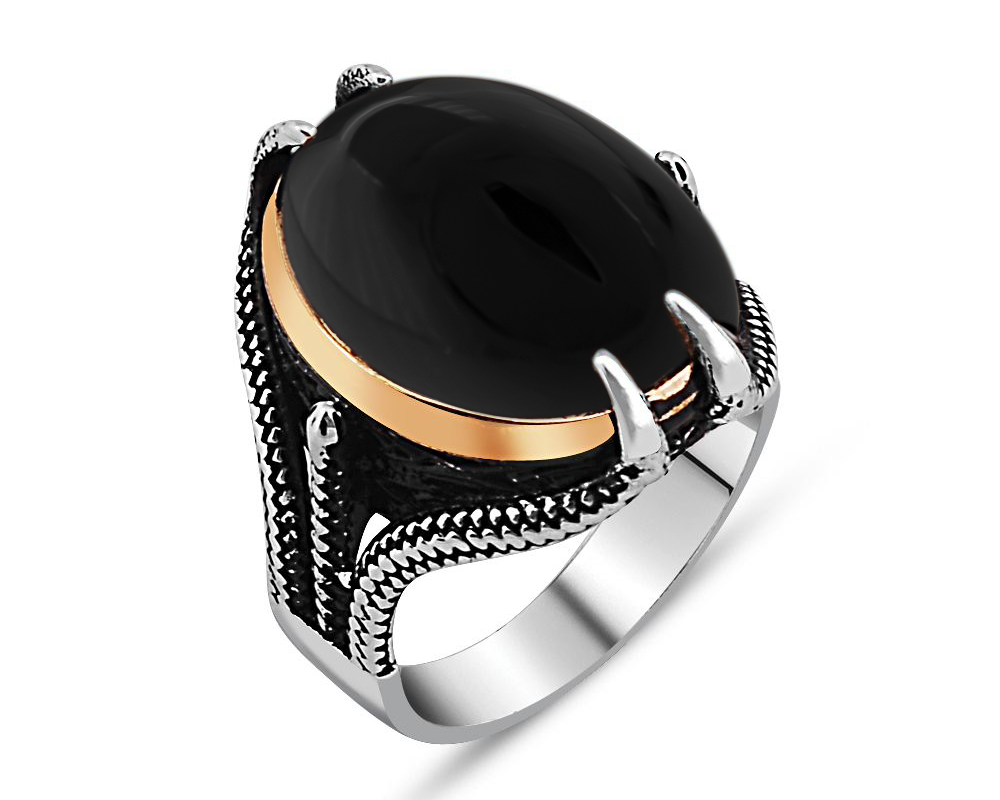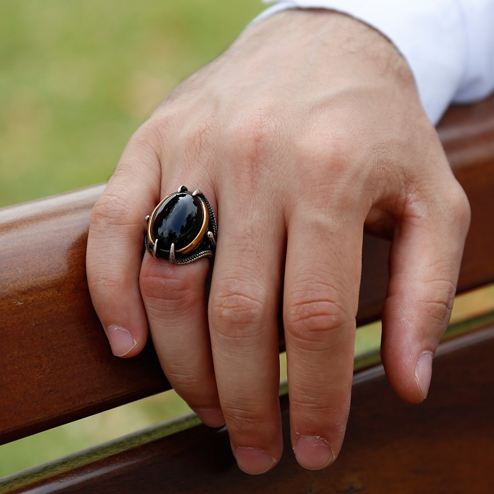 Pençe Tasarım Siyah Oniks Taşlı 925 Ayar Gümüş Erkek Yüzük