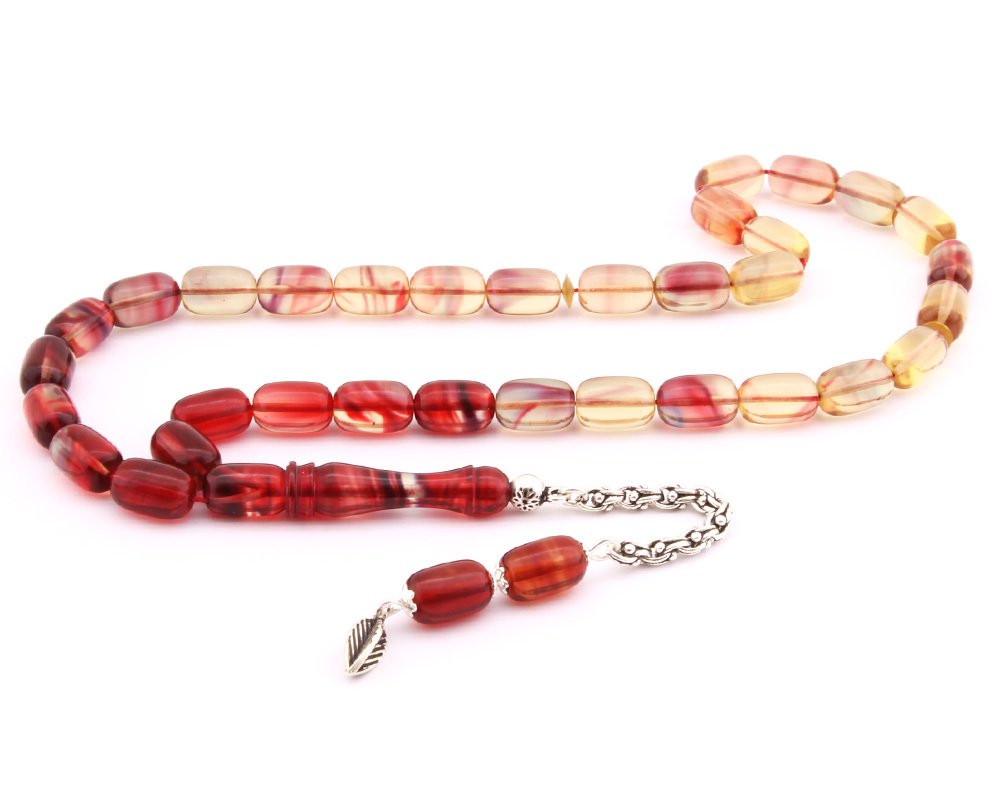 925 Ayar Gümüş Arnavut Püsküllü Kapsül Kesim Sıkma Kehribar Tesbih