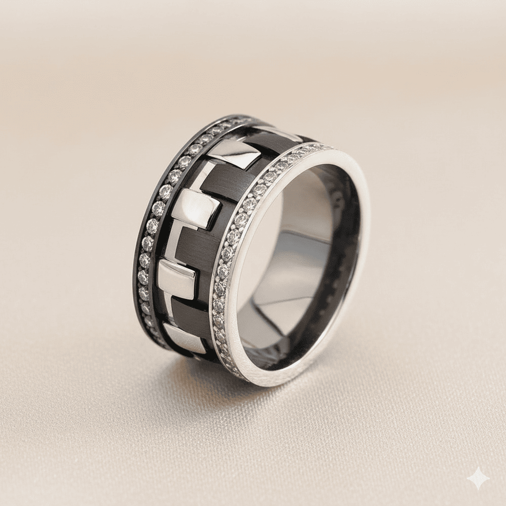 Damalı Tasarım Zirkon Taşlı Gri Beyaz 925 Ayar Gümüş Bayan Alyans