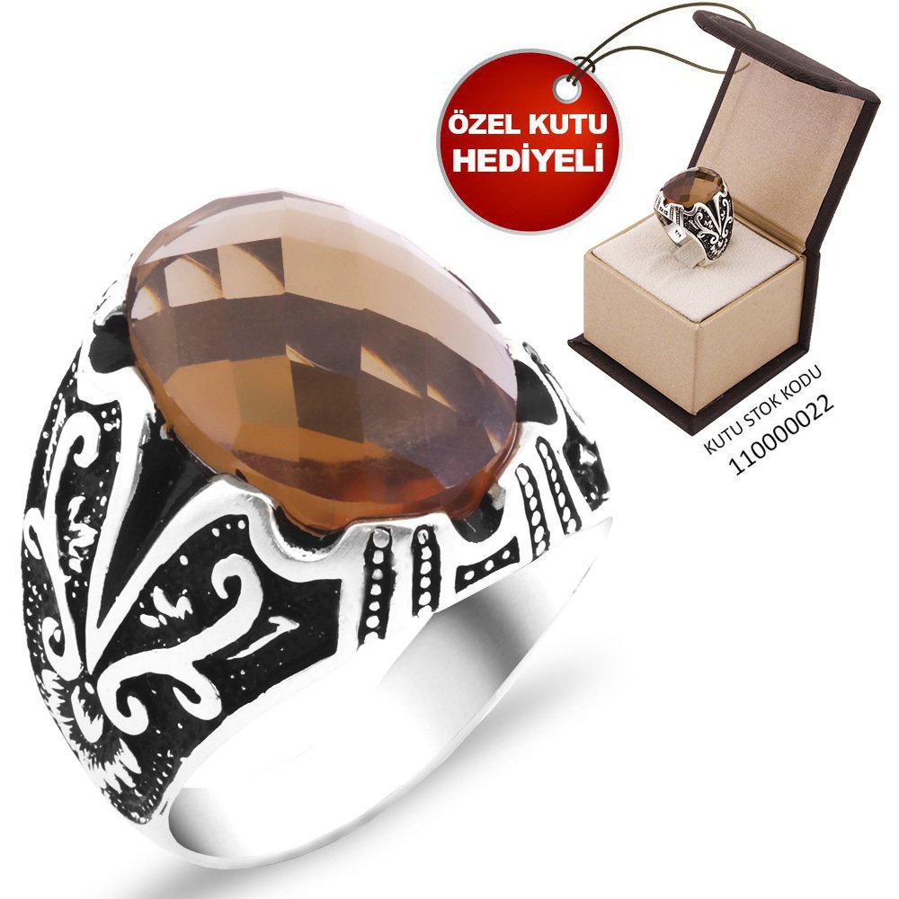 Kutu Hediyeli Zultanit Taşlı 925 Ayar Gümüş Erkek Yüzük