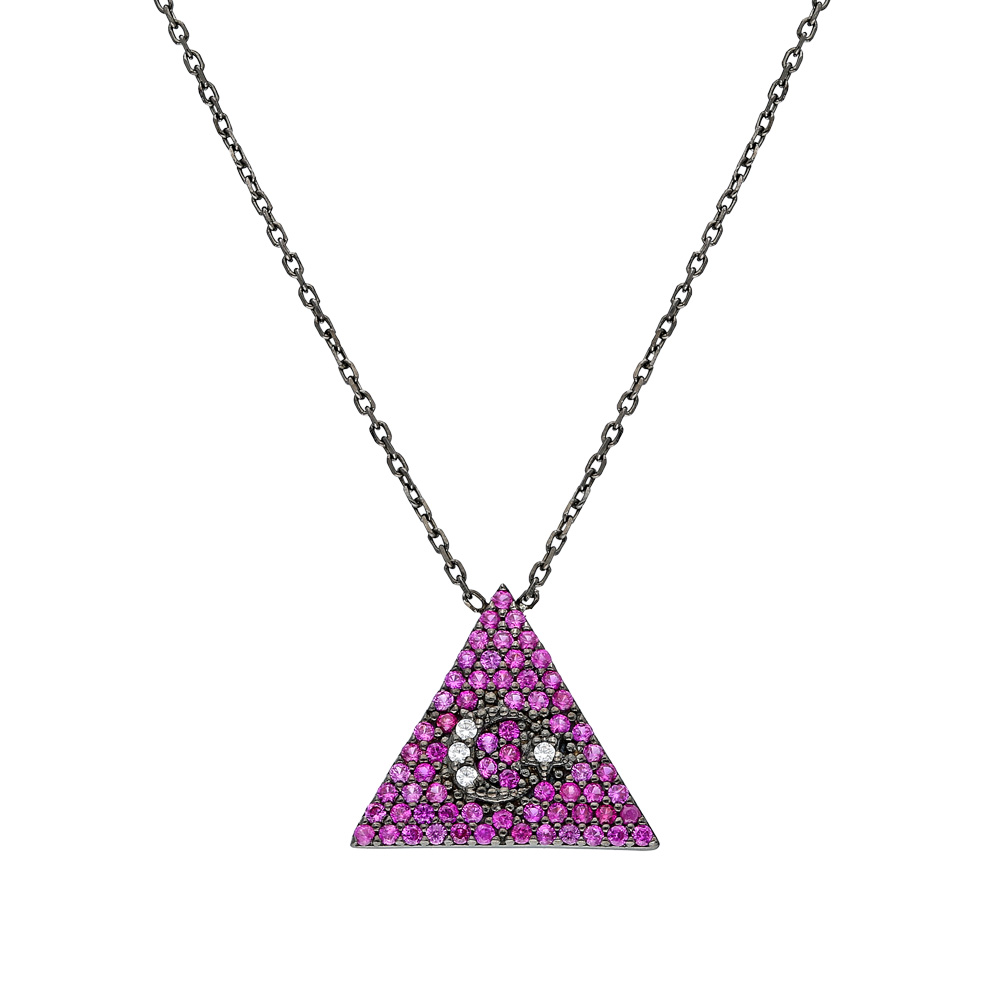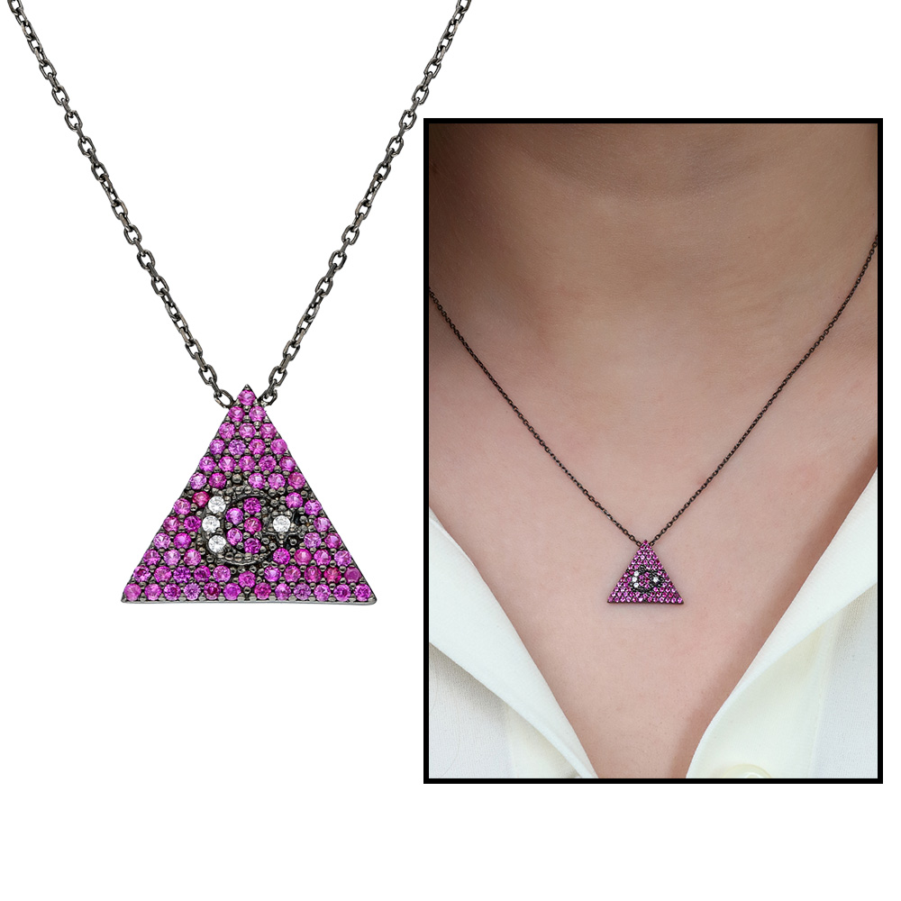 Pembe Zirkon Taşlı Üçgen Tasarım Ayyıldız 925 Ayar Gümüş Bayan Kolye