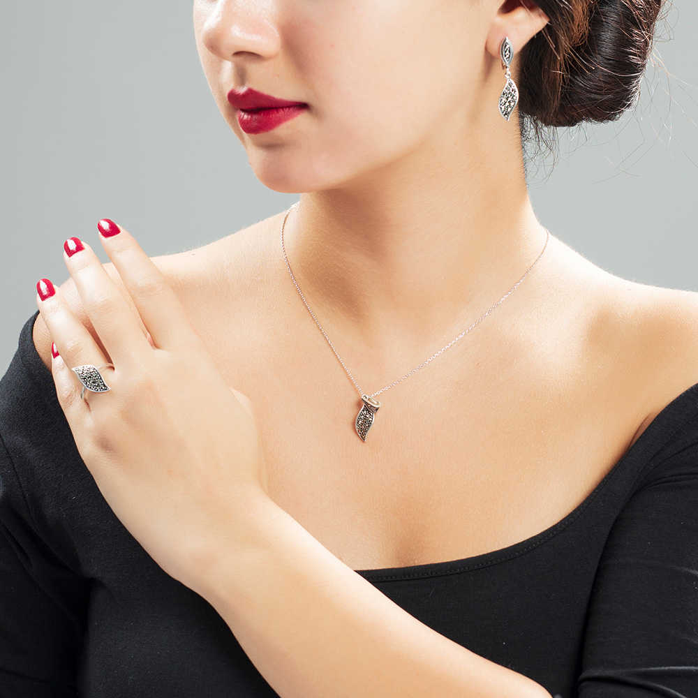 Zirkon Taşlı Yaprak Tasarım 925 Ayar Gümüş 3 lü Takı Seti - 3