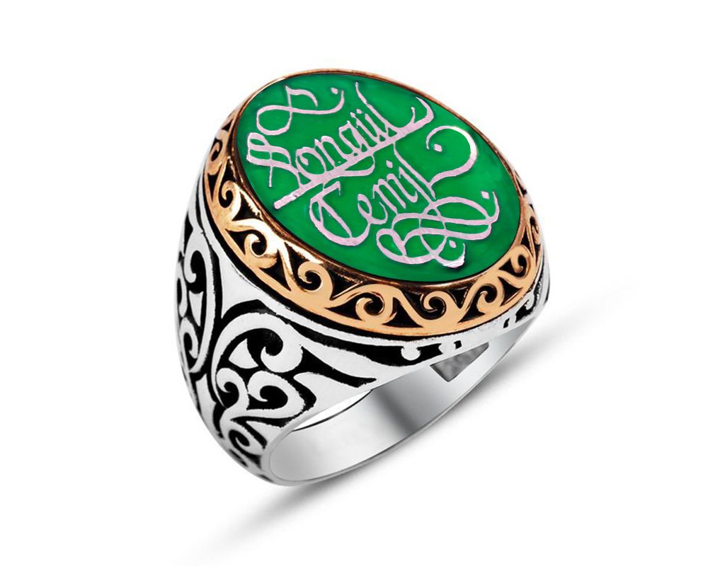 | Ürün Adı | 925 Ayar Gümüş Yeşil Mineli İsim Yazılı Yüzük |