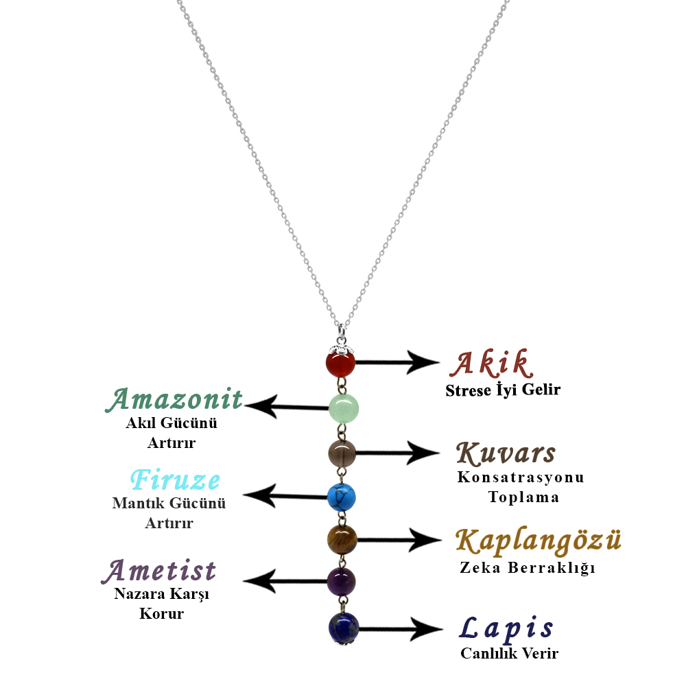Başarı çakrası takılarımız, binlerce yıldır kullanılan ve şifa özellikleriyle bilinen 7 farklı doğal taşın bir araya gelmesiyle oluşturulmuştur. Bu özel taşların enerjileri, vücudunuzdaki enerji akışını düzenleyerek, zihninizi berraklaştırır, ruhunuzu besler ve bedeninizi güçlendirir. Böylece, hedeflerinize daha kolay ulaşabilir, hayallerinizi gerçekleştirebilir ve hayatınızda başarıyı yakalayabilirsiniz. Akik, amazonit, ametist, hematit, kaplan gözü, kuvars ve oniks gibi değerli taşların birleşimiyle oluşturulan bu özel takılar, kişisel gücünüzü ortaya çıkarmanıza, hedeflerinize ulaşmanıza ve hayallerinizi gerçekleştirmenize yardımcı olur.