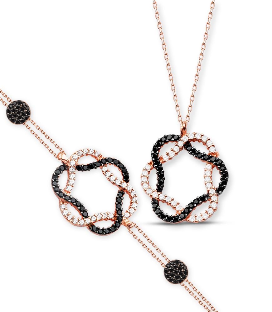 925 Ayar Gümüş Zirkon Taşlı Bileklik Ve Kolye Kombini
