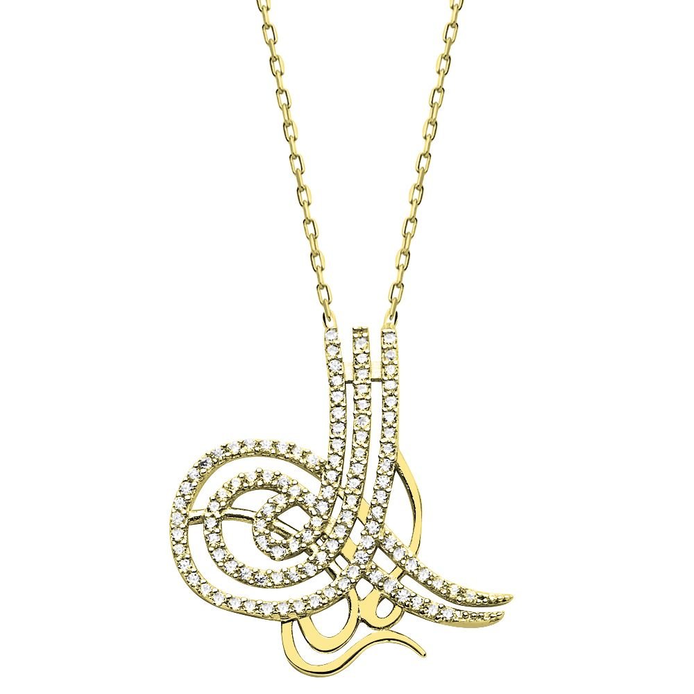 925 Ayar Gümüş Zirkon Taşlı Rose Kaplama Özel Model Tuğra Kolye