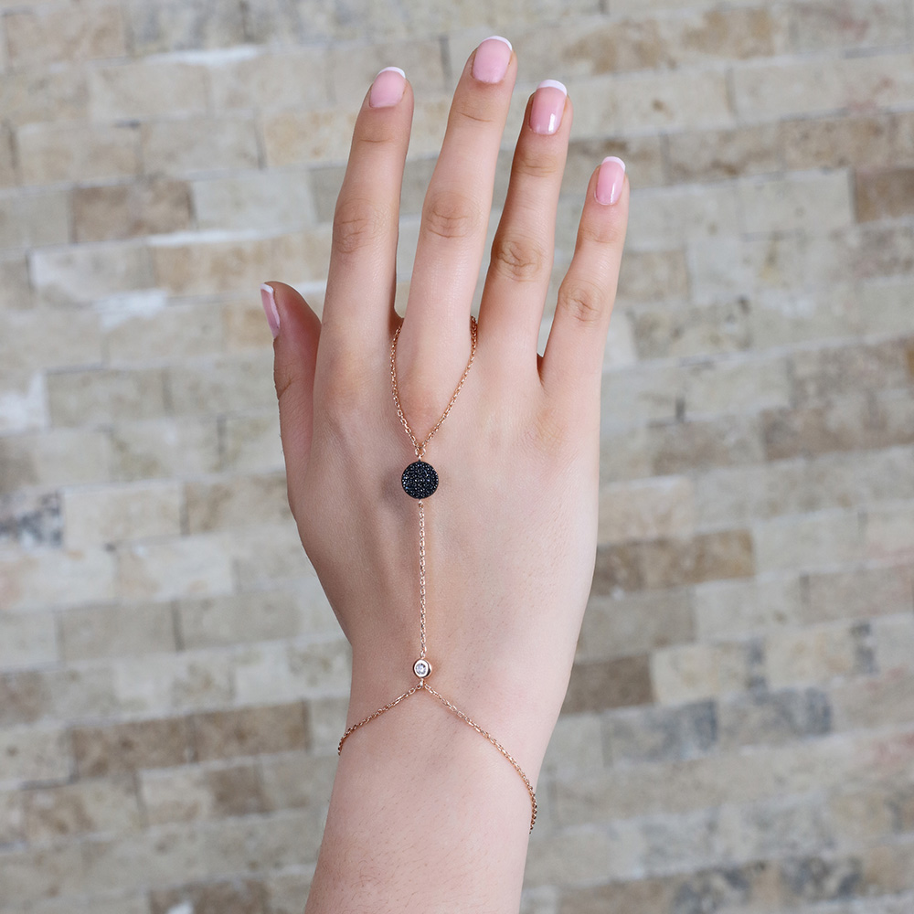 Yuvarlak Tasarım Siyah Zirkon Taşlı 925 Ayar Gümüş Şahmeran Bileklik