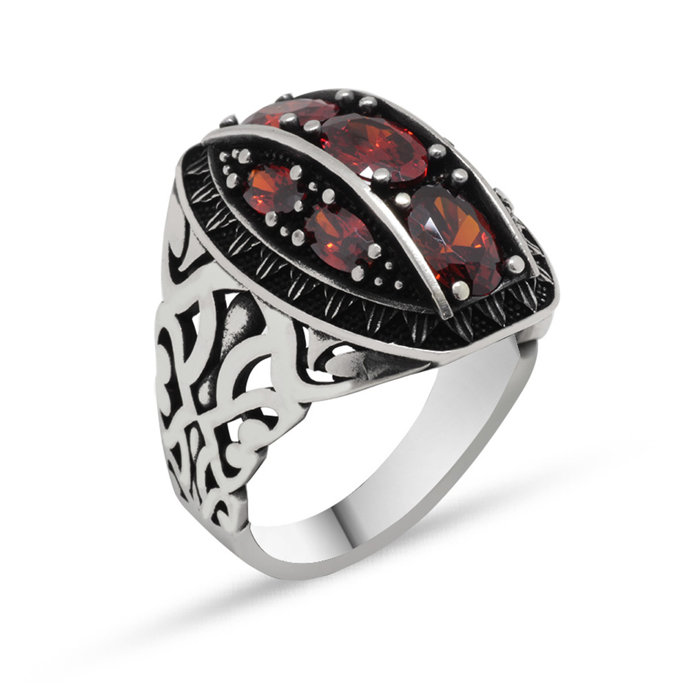 Özel Tasarım Parçalı Zirkon Taşlı 925 Ayar Gümüş Erkek Yüzük - 5