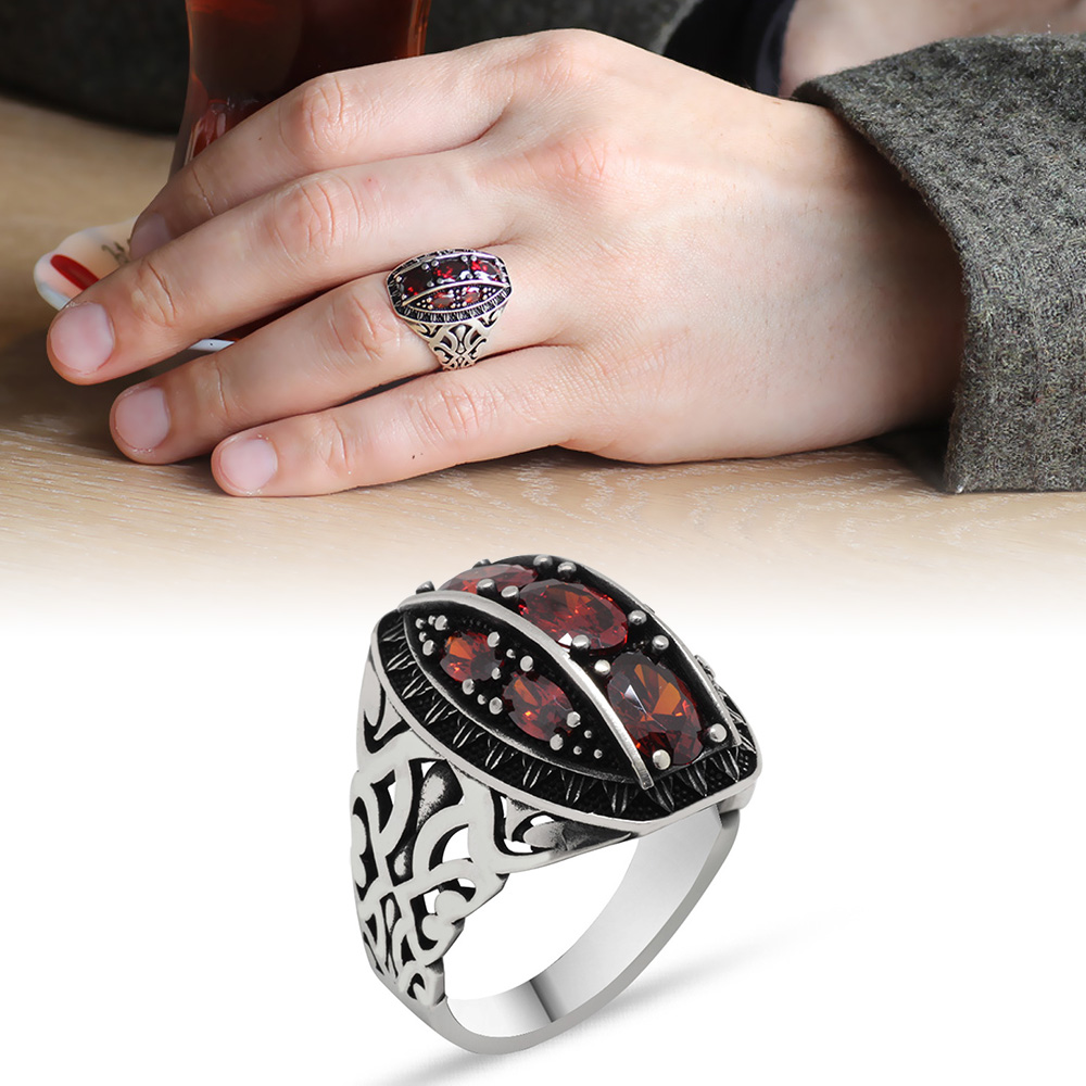 Özel Tasarım Parçalı Zirkon Taşlı 925 Ayar Gümüş Erkek Yüzük