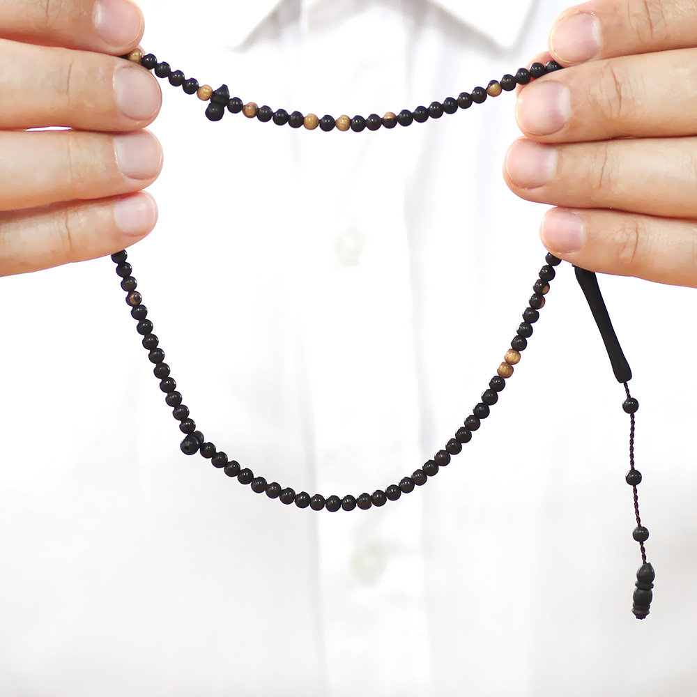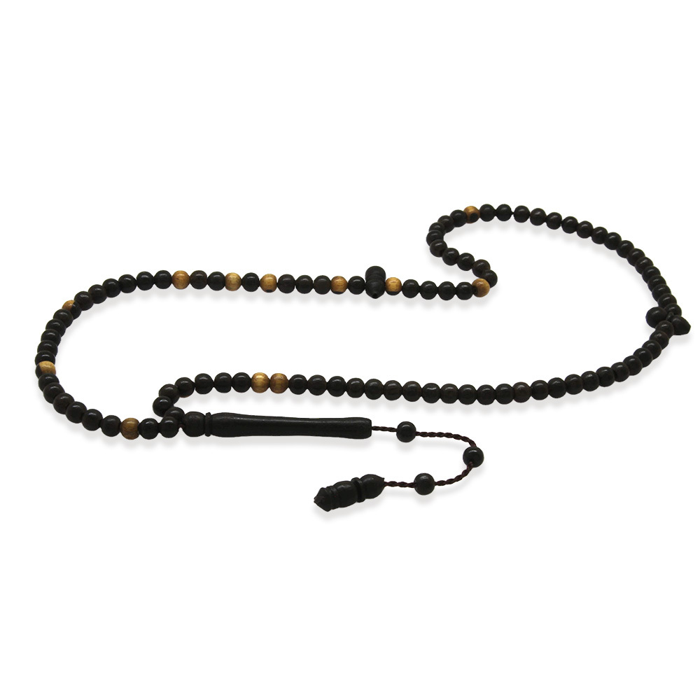 Abanoz Ağacı Namaz Tesbihi - Siyah Beyaz Renk - Sistemli - Küre Kesim