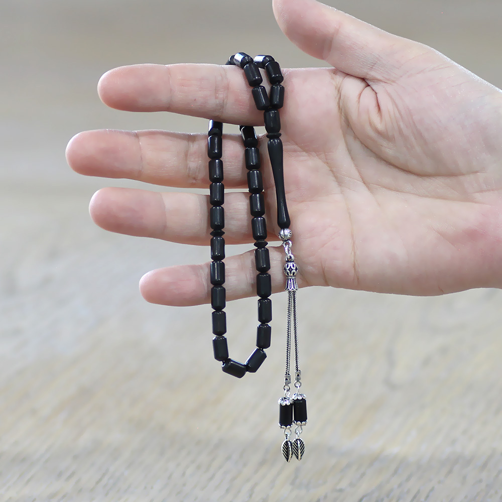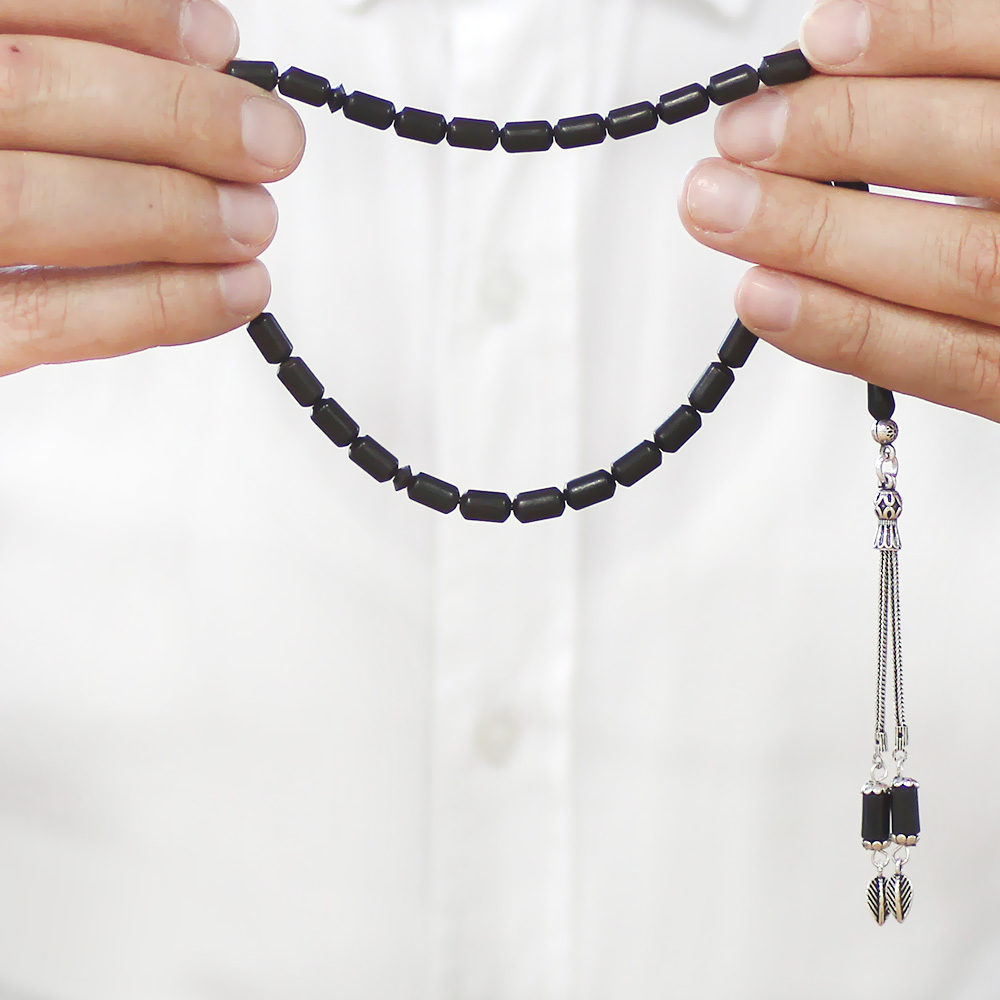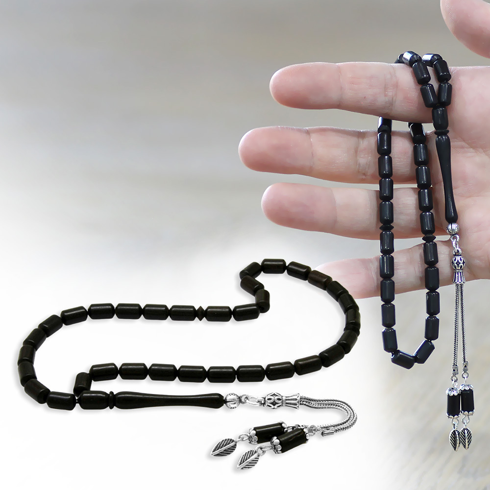 Abanoz Ağacı Tesbih - 925 Ayar Gümüş Püsküllü - Siyah Renk - Kapsül Kesim