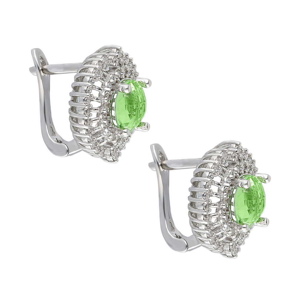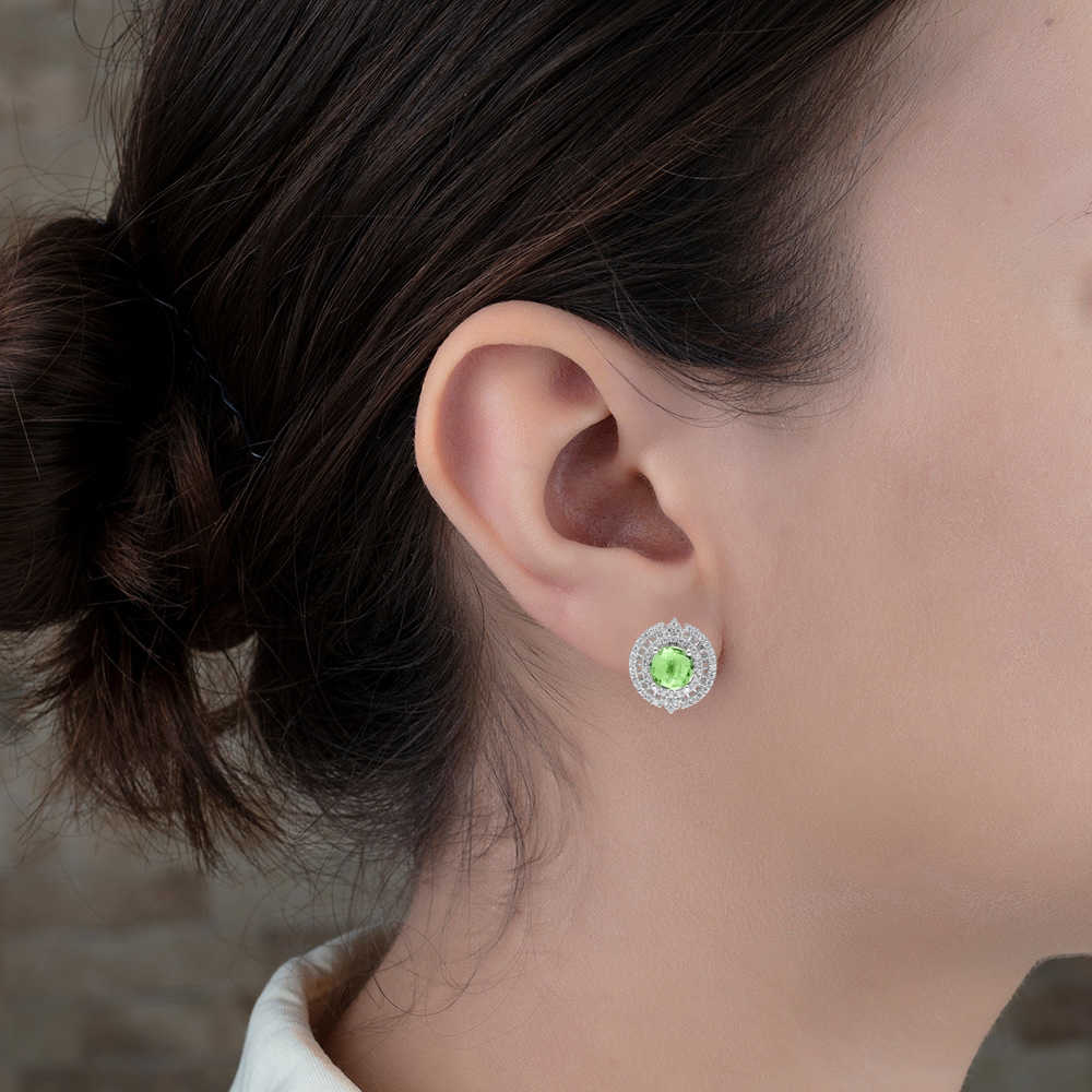 Açık Yeşil Zirkon Taşlı 925 Ayar Gümüş Bayan Küpe - 1