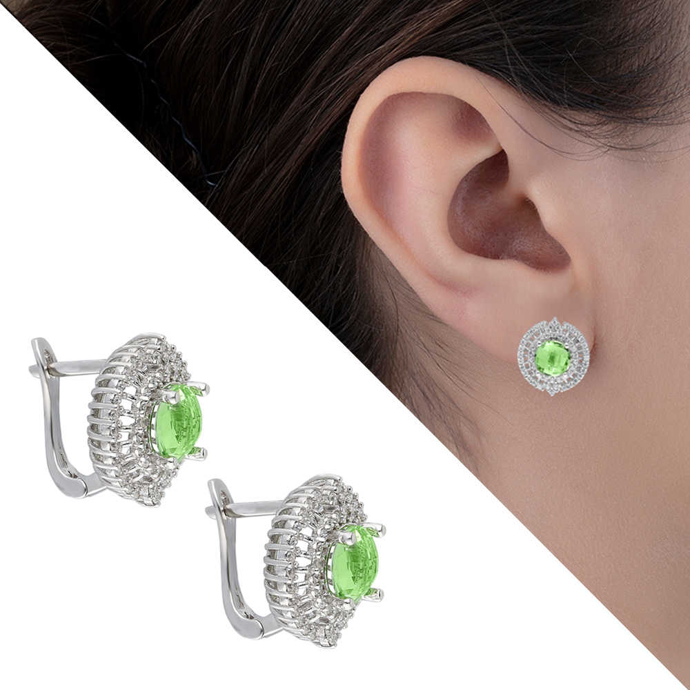 Açık Yeşil Zirkon Taşlı 925 Ayar Gümüş Bayan Küpe