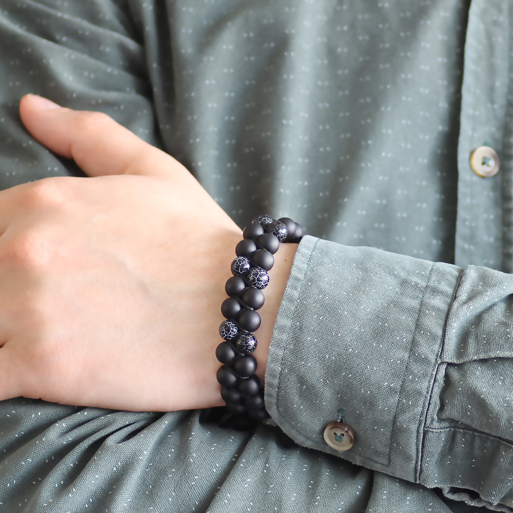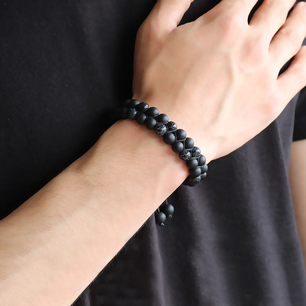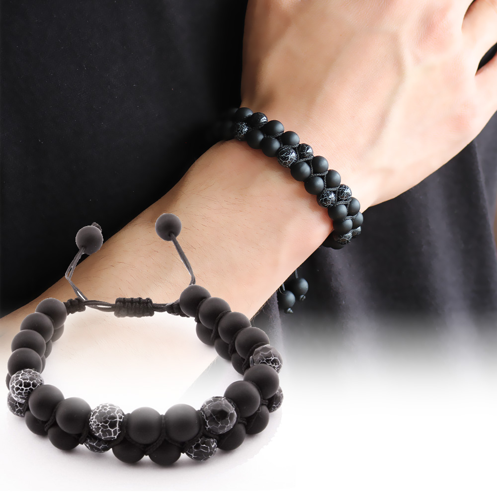 Makrome Örgü Çift Sıra Küre Kesim Akik-Oniks Doğaltaş Bileklik - 1