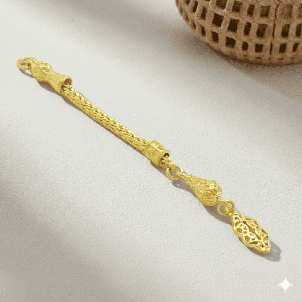 Anadolu Deseni Tasarım Altın Renk Kalın Zincirli 925 Ayar Gümüş Püskül