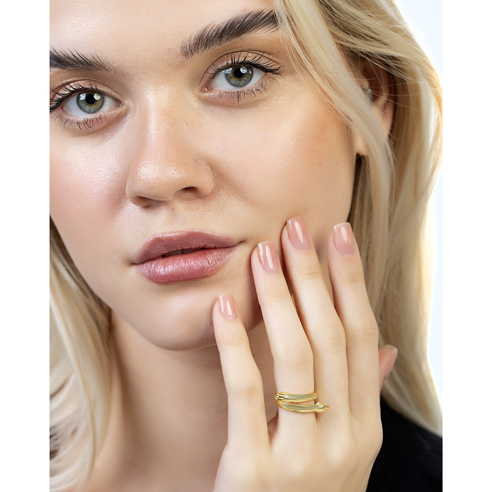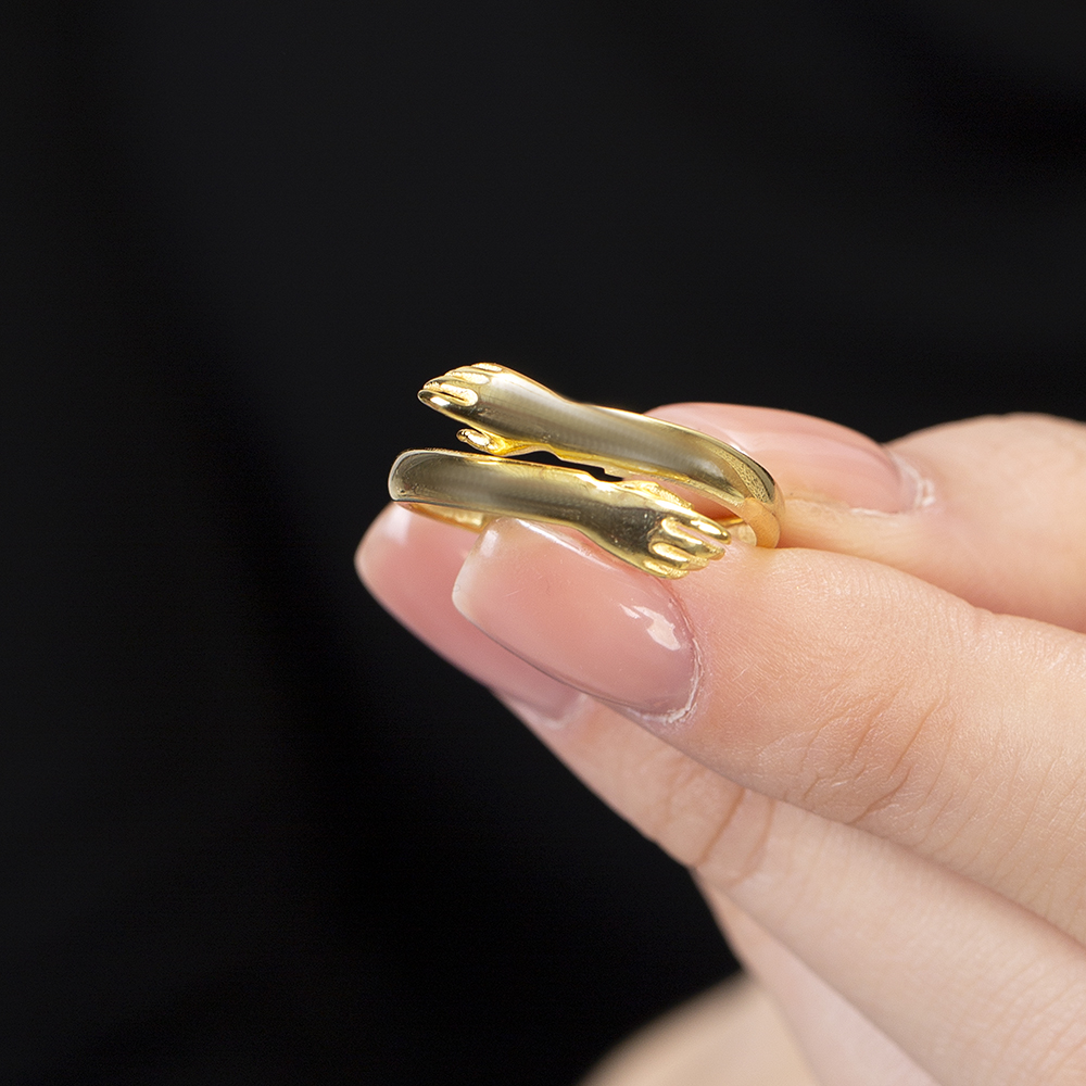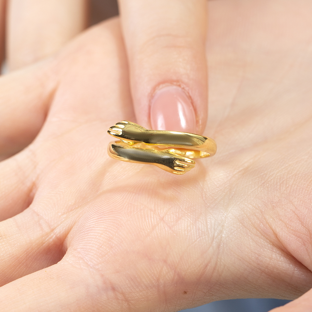 Anne Bebek Eli Detaylı Altın Renk Ayarlanabilir Ölçü 925 Ayar Gümüş Kadın Yüzük
