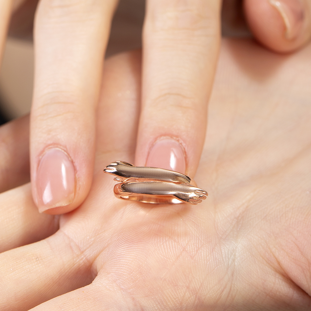 Anne Bebek Eli Detaylı Rose Renk Ayarlanabilir Ölçü 925 Ayar Gümüş Kadın Yüzük