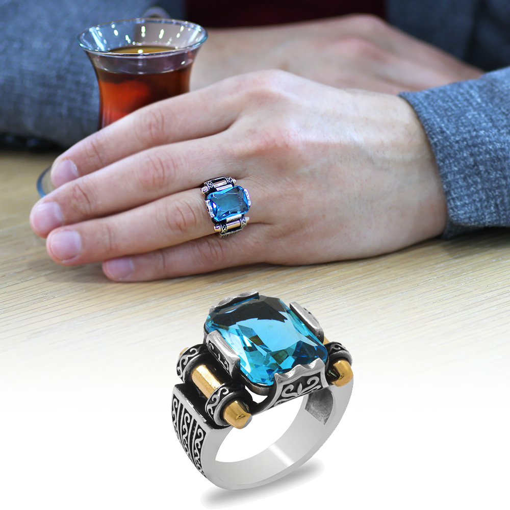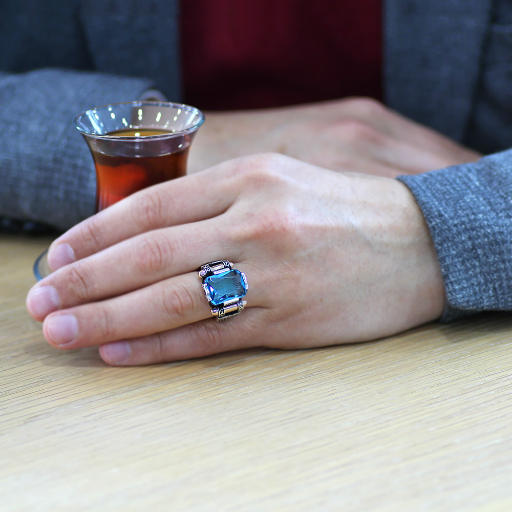 Aqua Baget Taşlı Avangarde Tasarım 925 Ayar Gümüş Şah Cihan Yüzük
