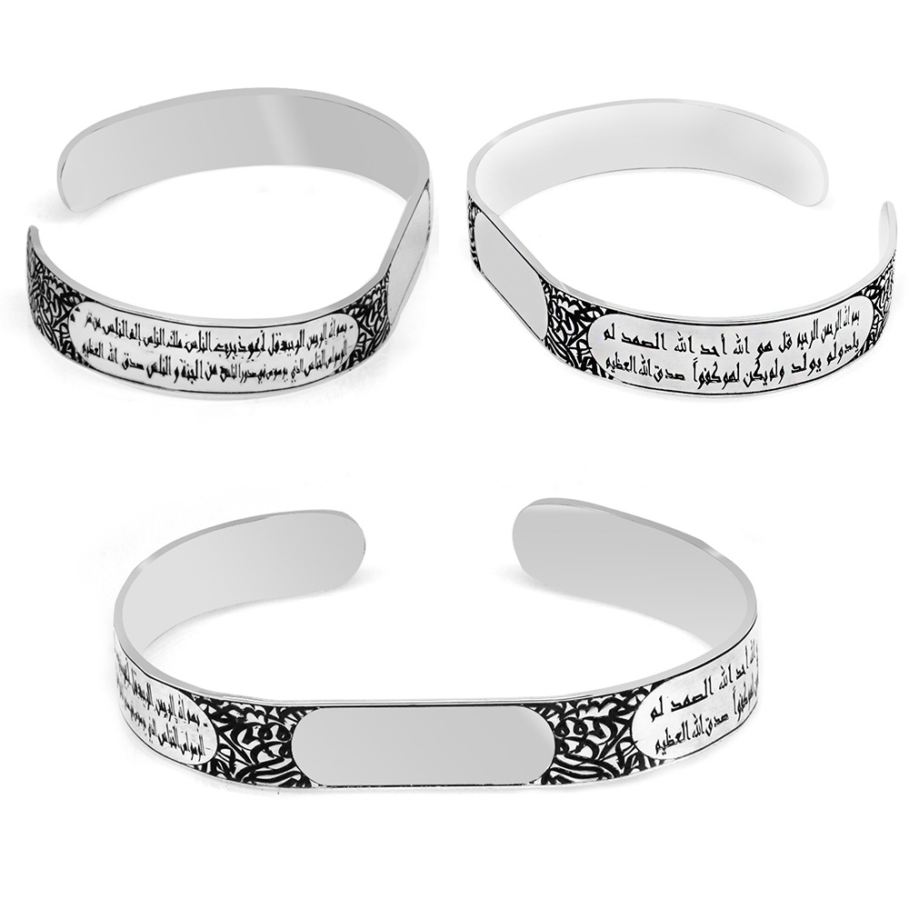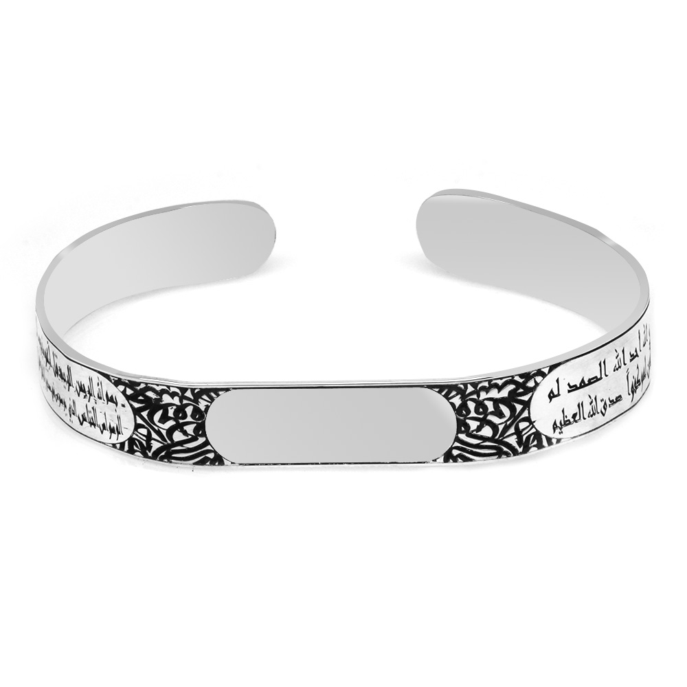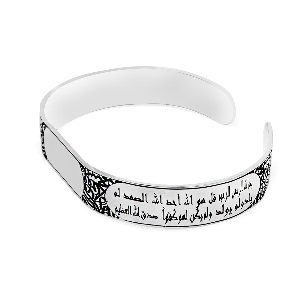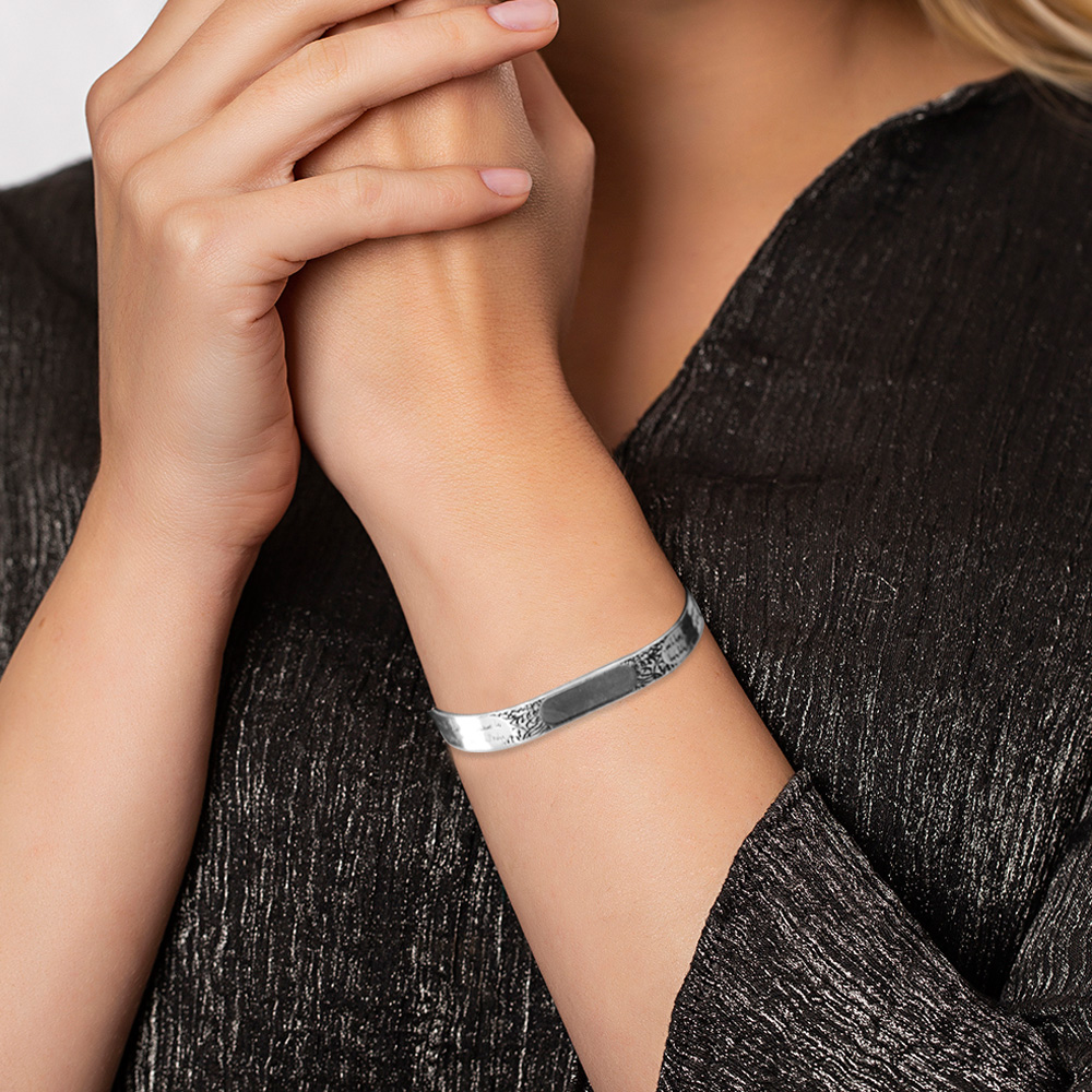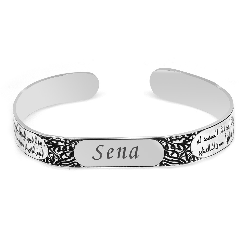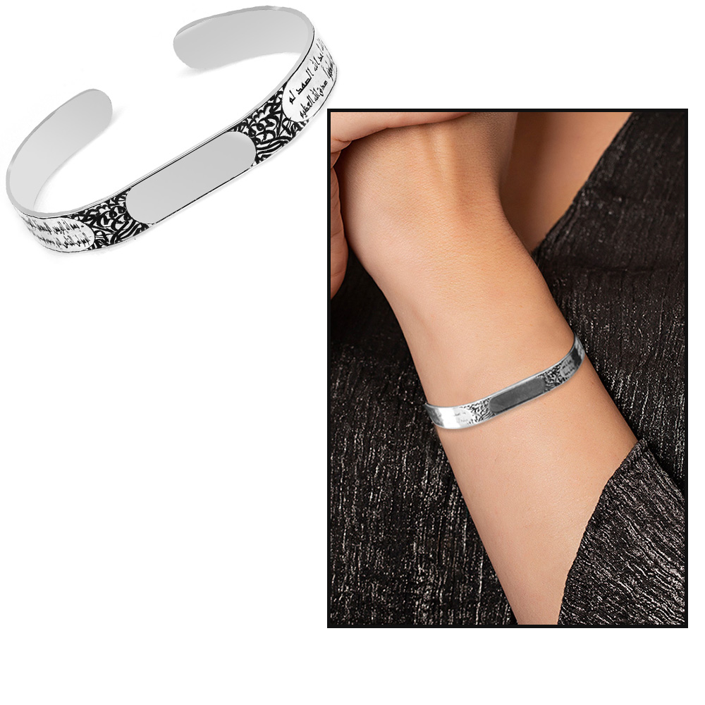 Arapça İnşirah Suresi Yazılı Vav Süslemeli Kelepçe Model İsme Özel 925 Ayar Gümüş Kadın Bileklik