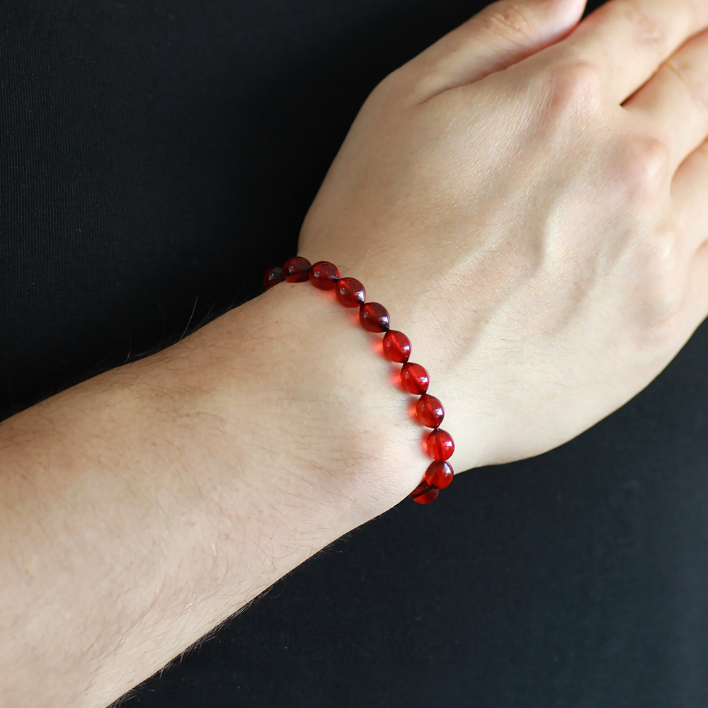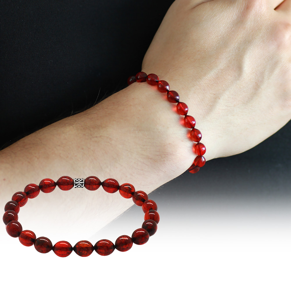 Arpa Kesim Kırmızı Doğal Damla Kehribar Erkek Bileklik - 3