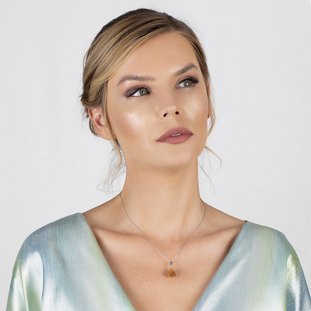 Asimetrik Tasarım 925 Ayar Gümüş Zincirli Soft Kahve Kedigözü Kolye