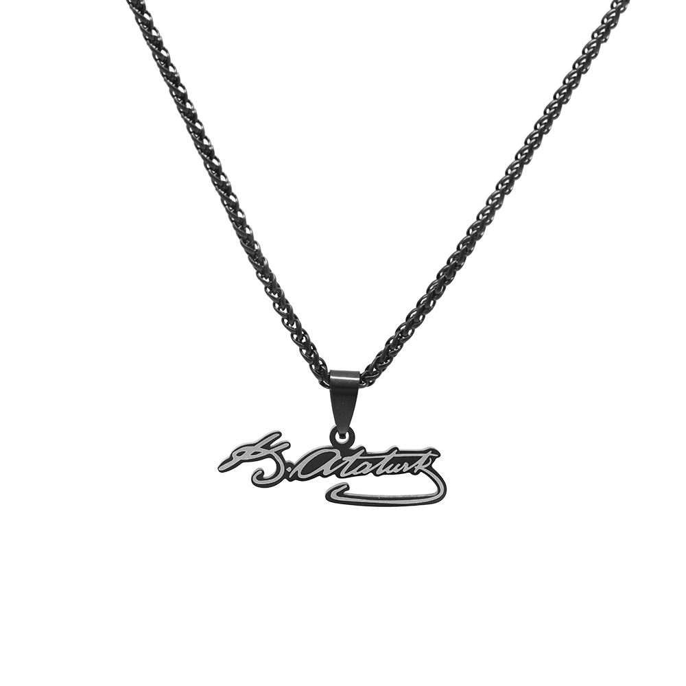 Atatürk İmzalı Siyah Renk Çelik Erkek Kolye