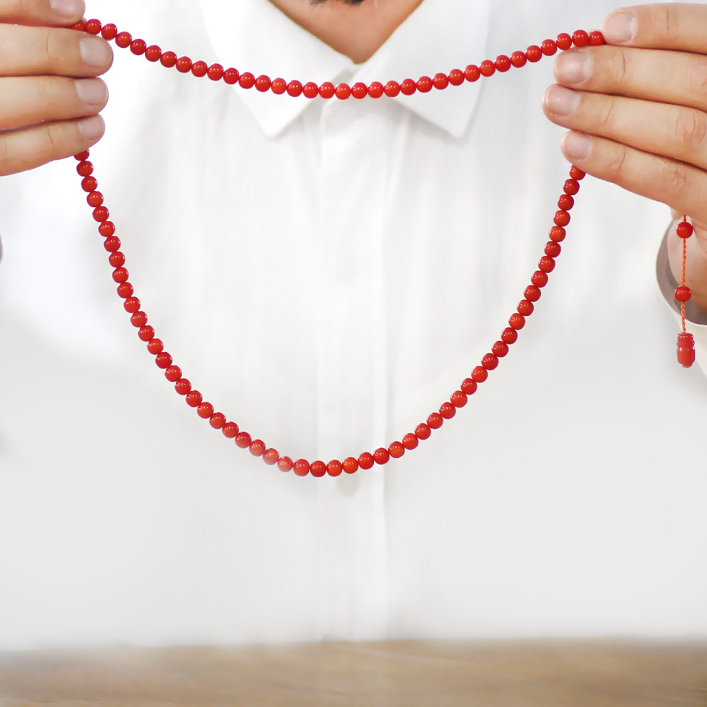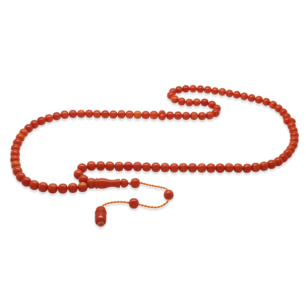 Ateş Kehribar Namaz Tesbihi - Sistemli - Kırmızı Renk - Özel Kesim