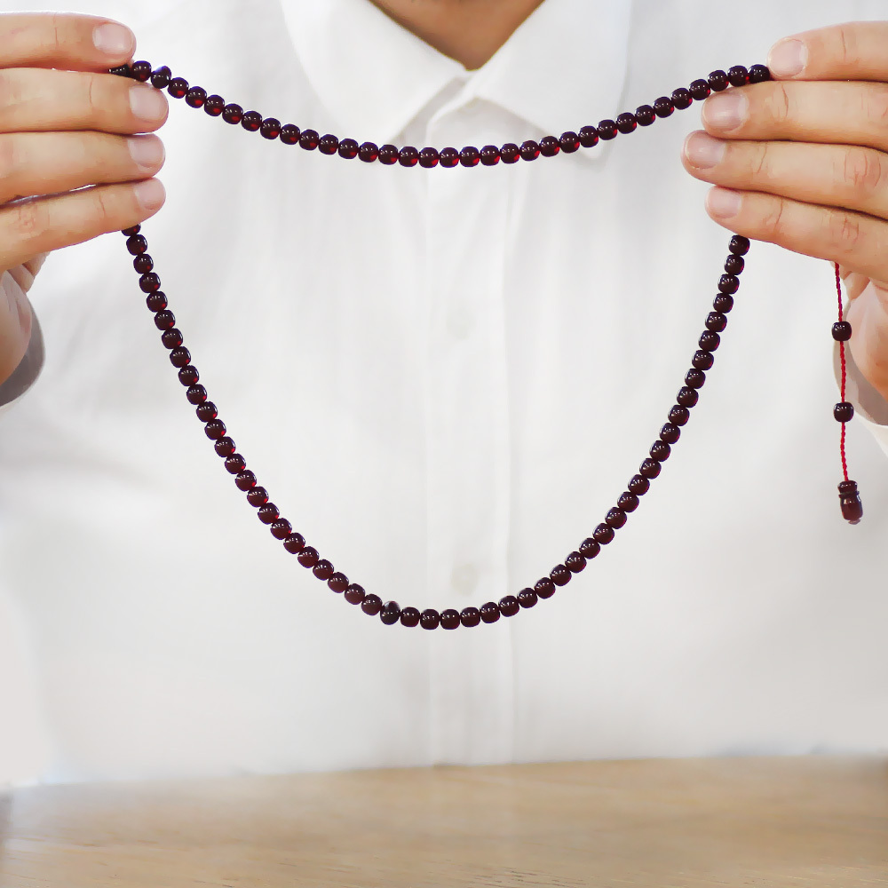 Ateş Kehribar Namaz Tesbihi - Sistemli - Koyu Kırmızı Renk - Özel Kesim