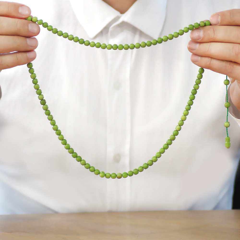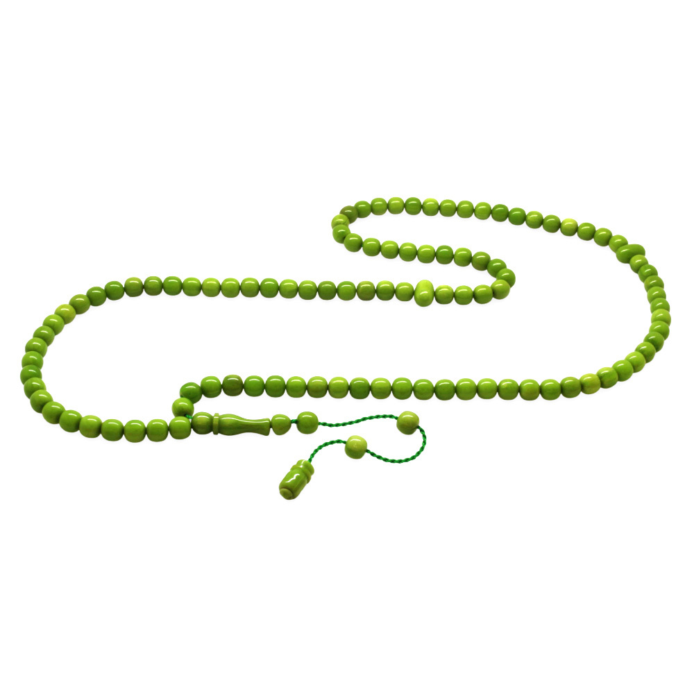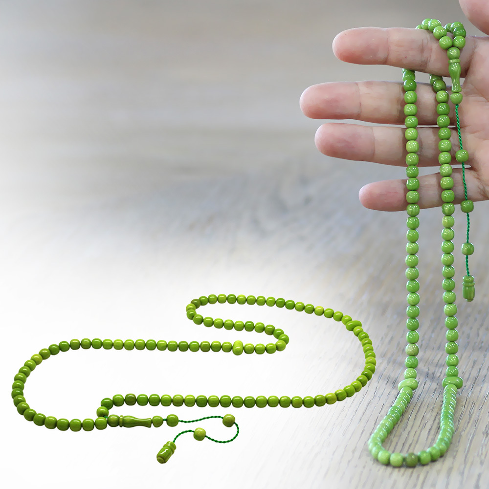 Ateş Kehribar Namaz Tesbihi - Sistemli - Yeşil Renk - Özel Kesim