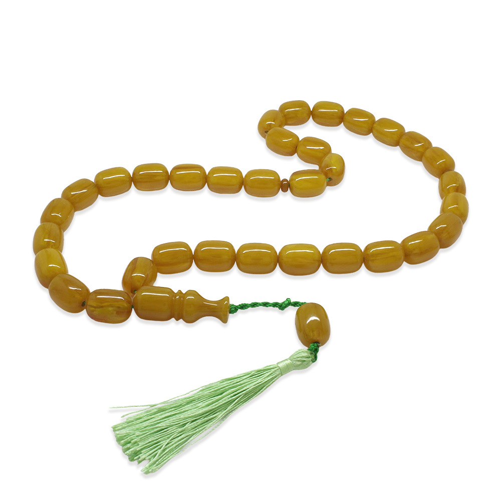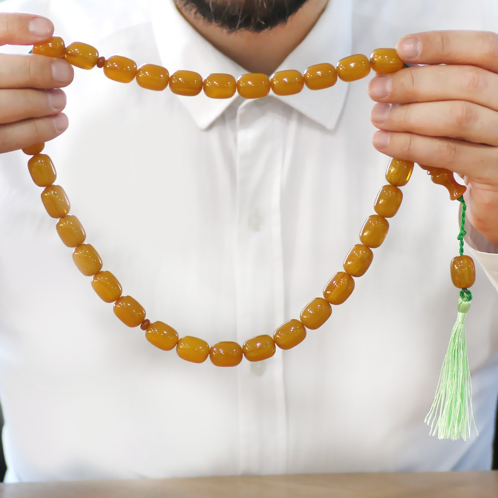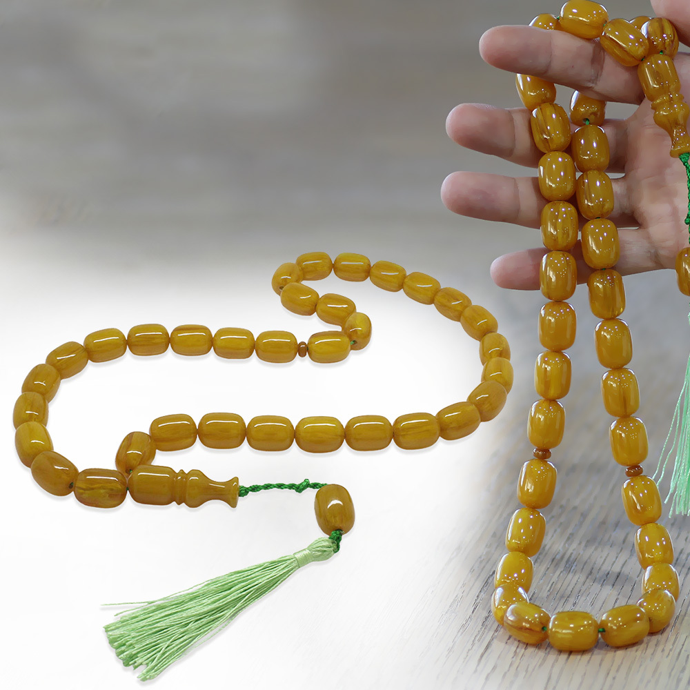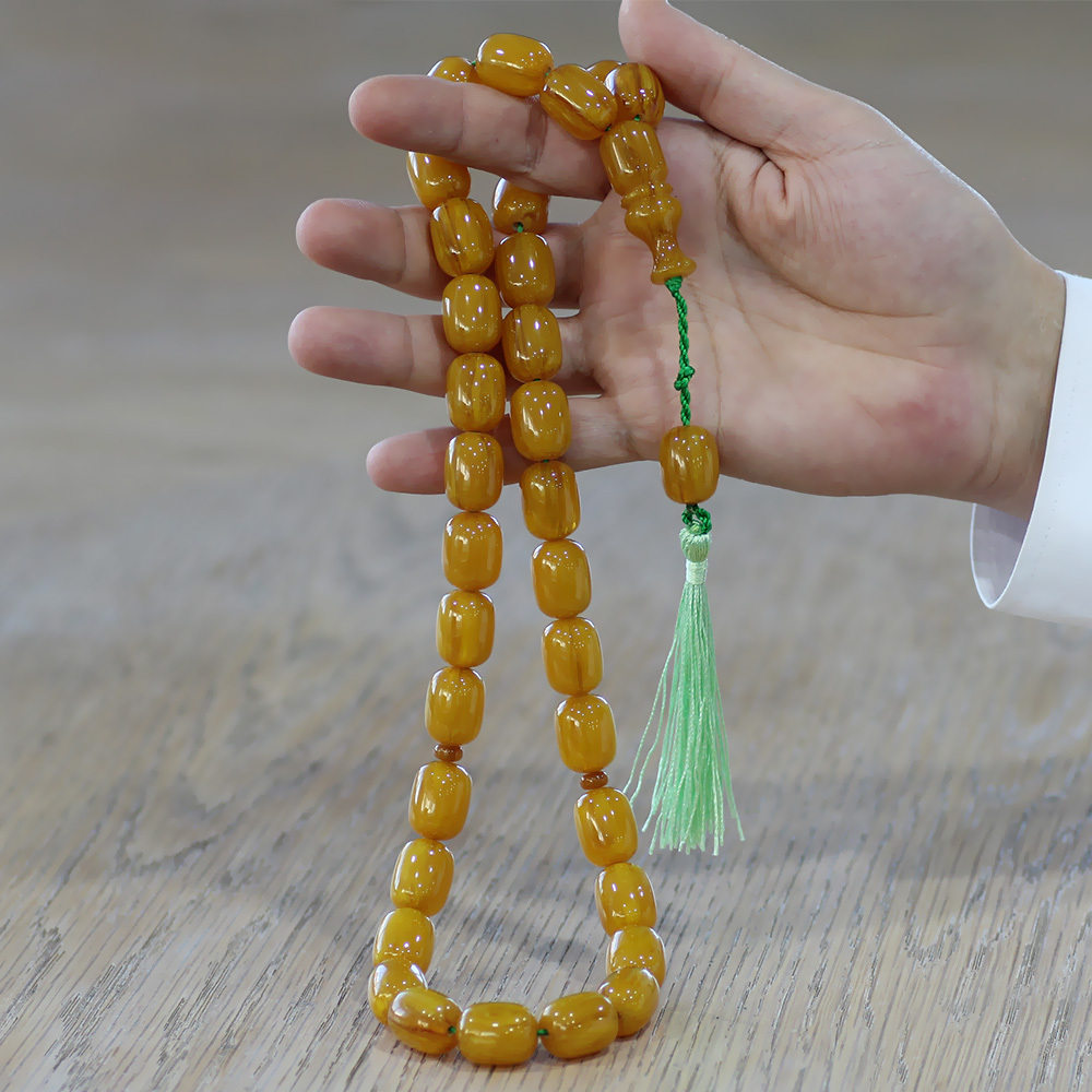 Ateş Kehribar Tesbih - Osmanlı Saray Püsküllü - Mega Boy - Sarı Renk - Kapsül Kesim