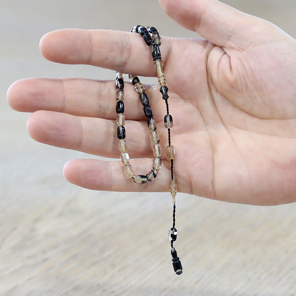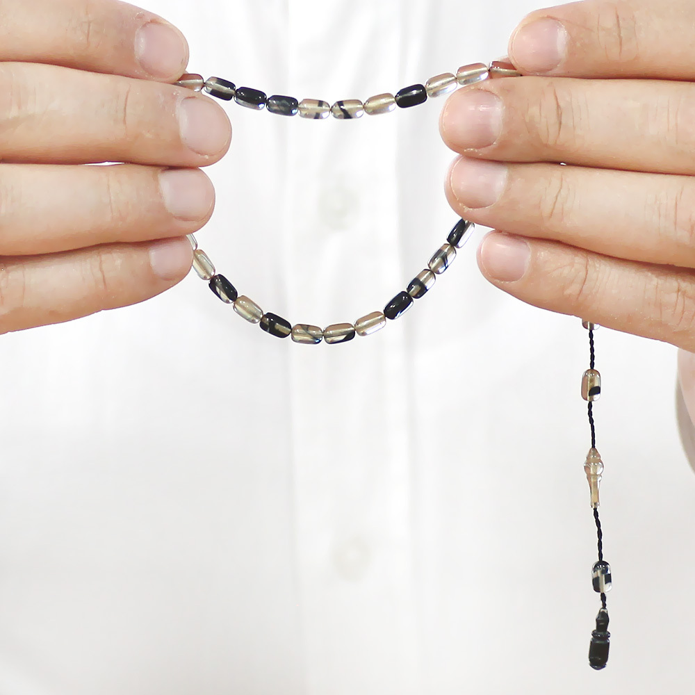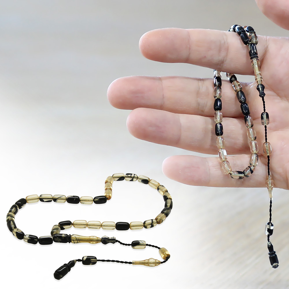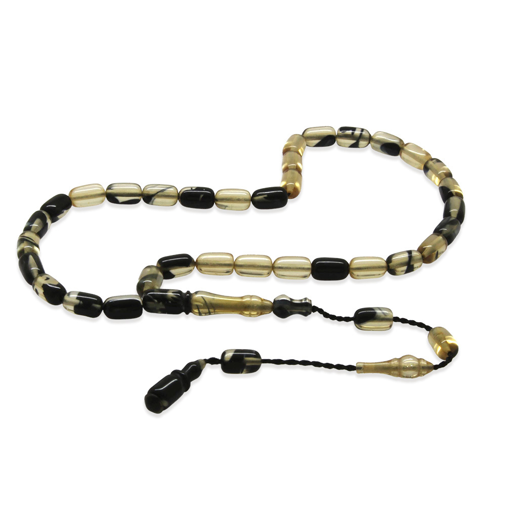 Ateş Kehribar Tesbih - Sistemli Tasarım - Mini Boy - Siyah Beyaz - Kapsül Kesim
