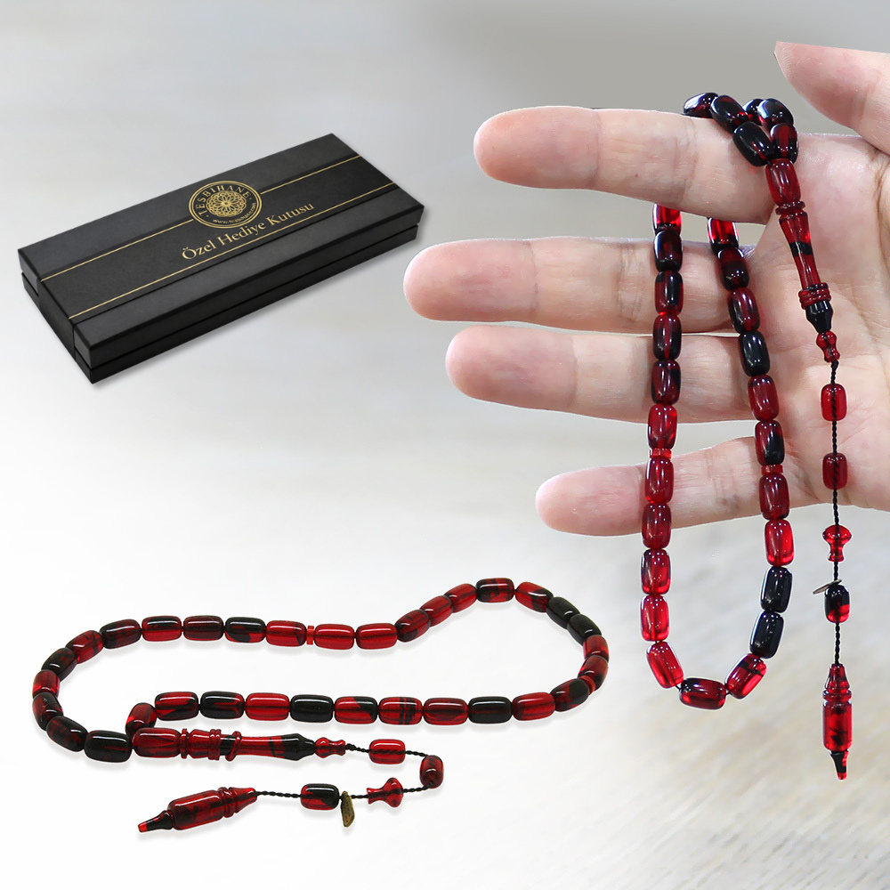 Katalin Tesbih - Sistemli - Usta İşçilikli - İmamesi Halkalı - Kırmızı Siyah - Kapsül Kesim