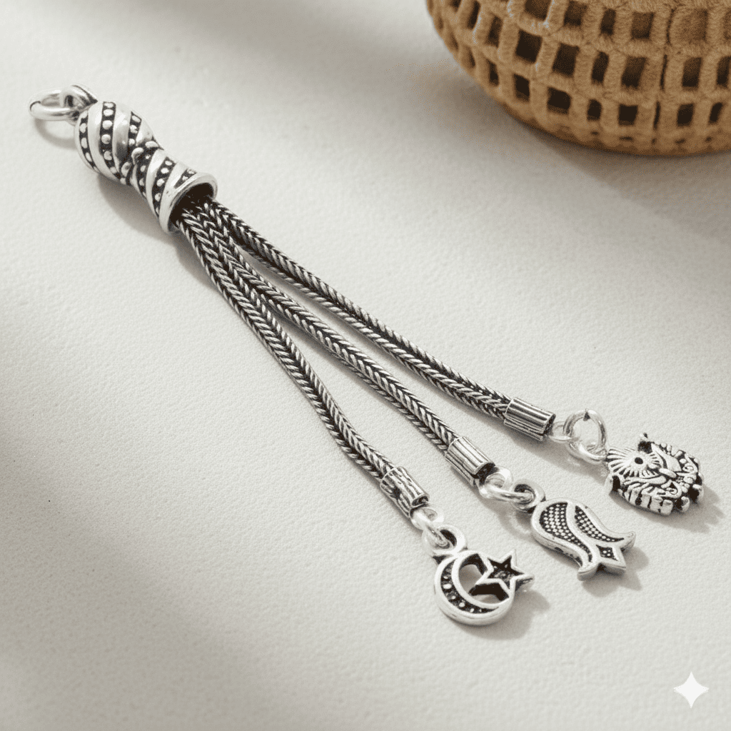 Ayyıldız Arma Lale Tasarım 3 lü Kamçı 925 Ayar Gümüş Püskül