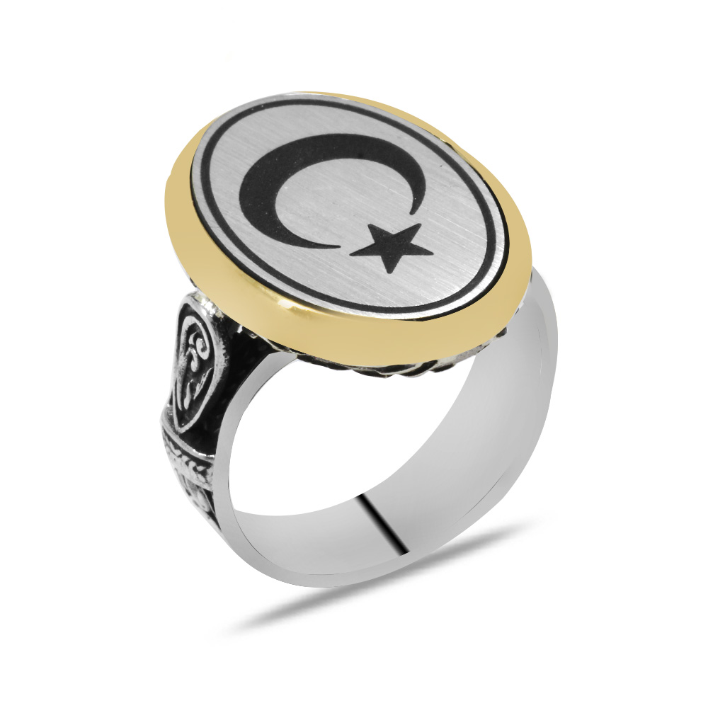 Ayyıldız Desenli Minimal Oval Tasarım 925 Ayar Gümüş Erkek Yüzük - 1