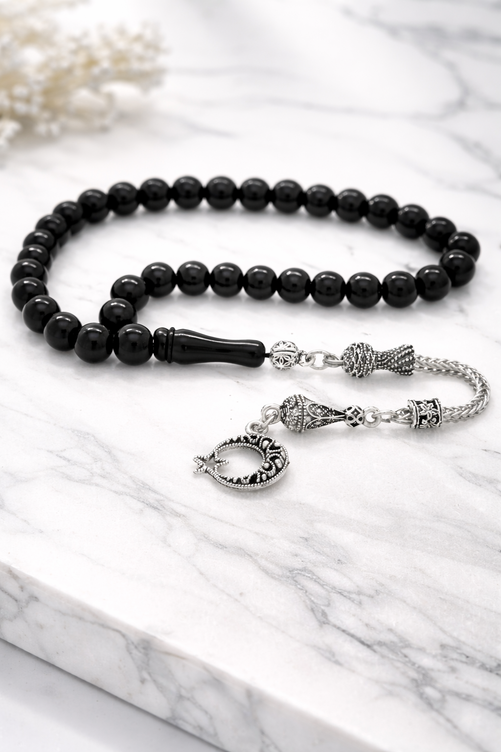 Kararmaz Metal Ayyıldız Püsküllü Küre Kesim Rus Oltu Tesbih