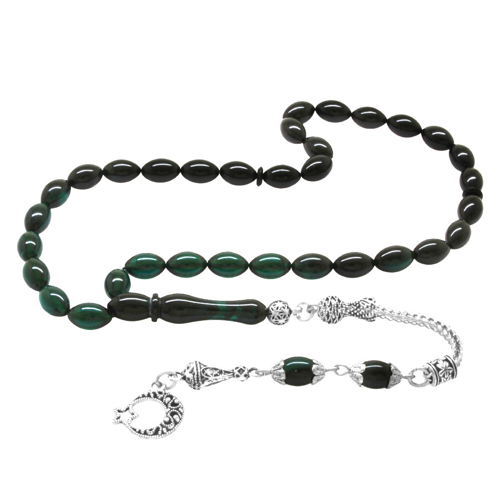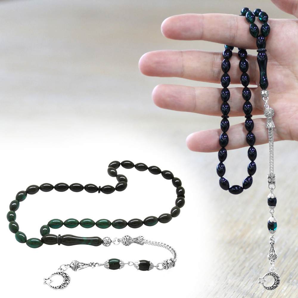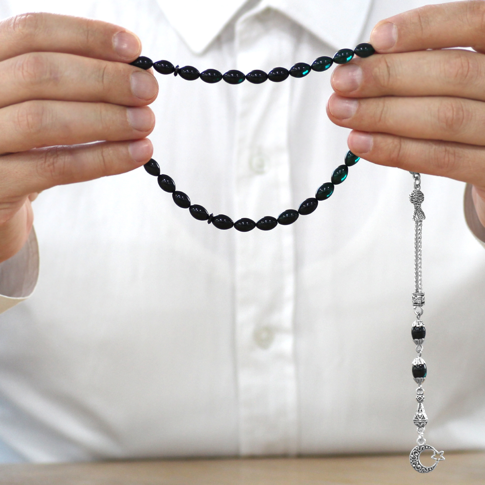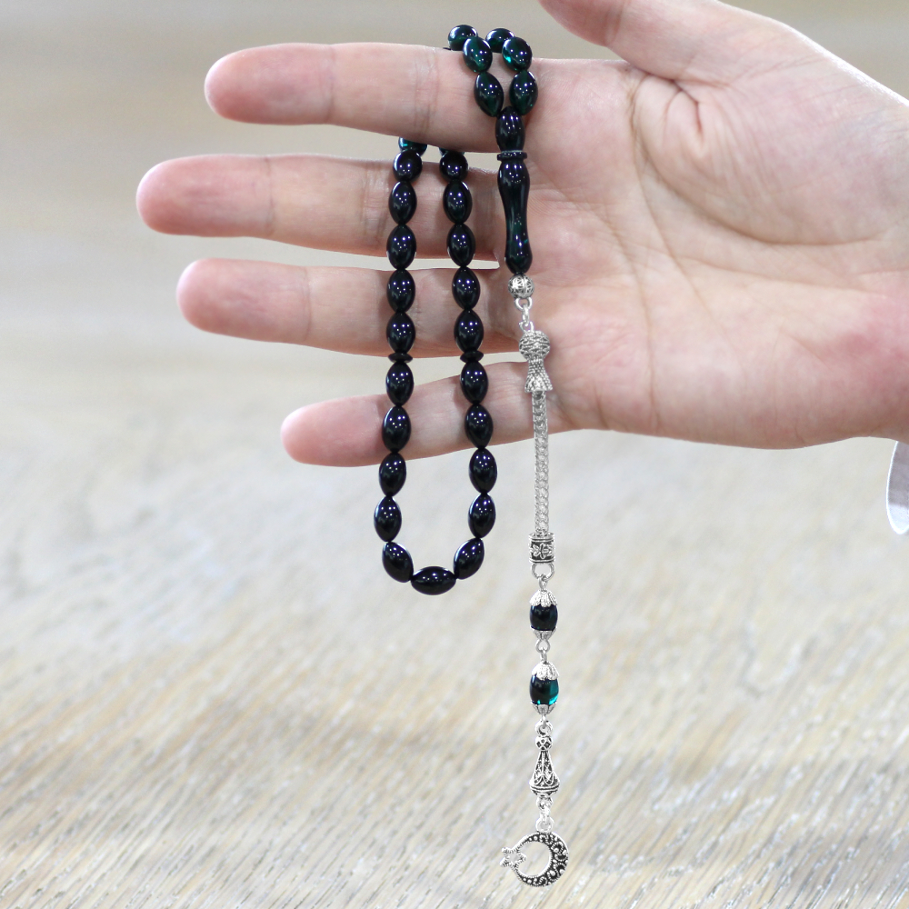 Ayyıldız Kararmaz Metal Püsküllü Arpa Kesim Süzme Turkuaz Siyah Ateş Kehribar Tesbih
