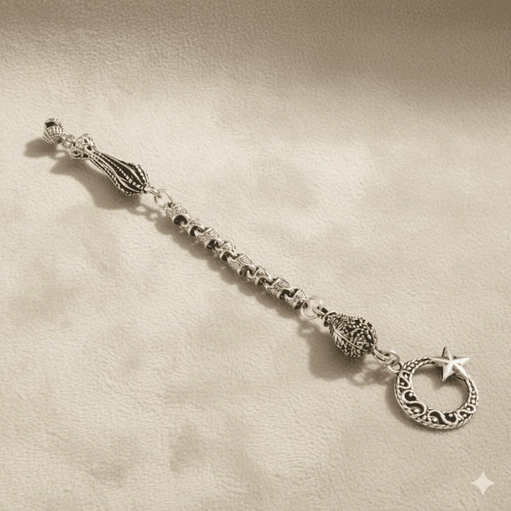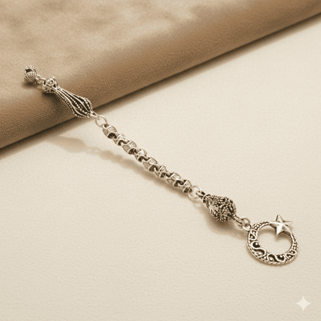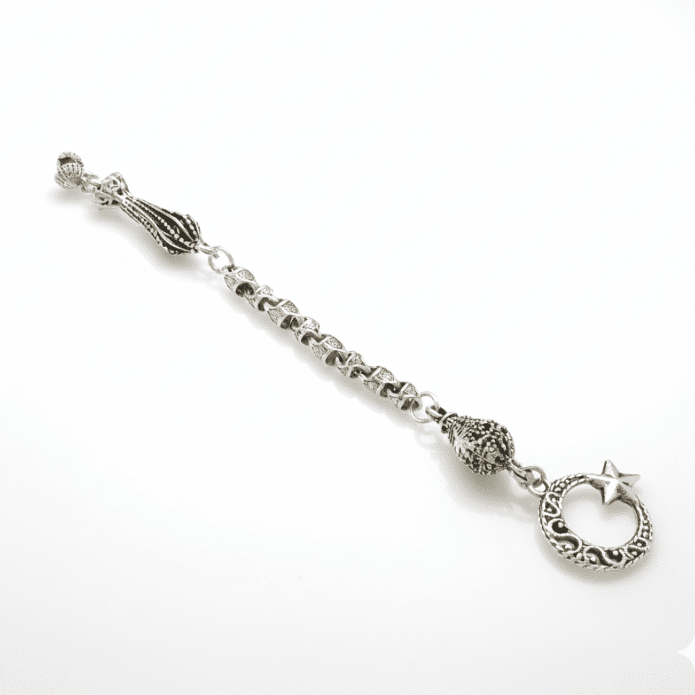 Ayyıldız Temalı Gümüş Renk Snake Zincir Tek Kamçılı Kararmaz Metal Püskül