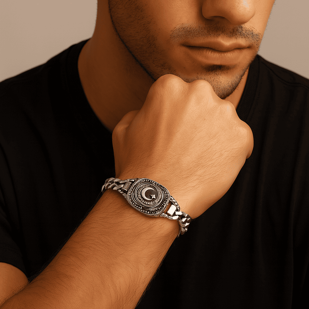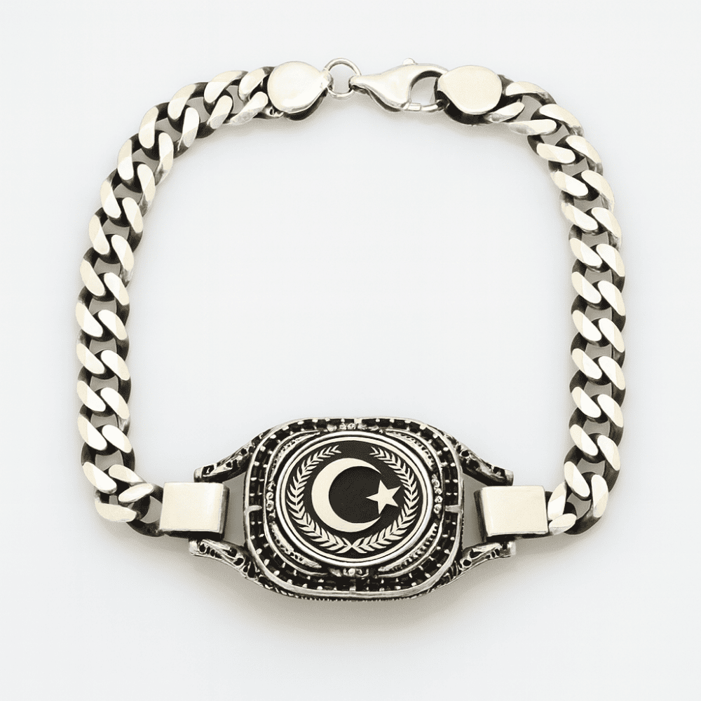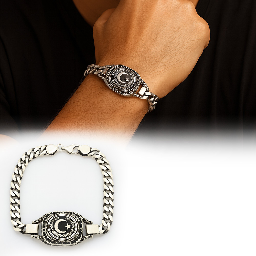 Ayyıldız Temalı Gurmet Zincirli 925 Ayar Gümüş Erkek Bileklik
