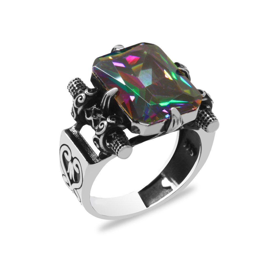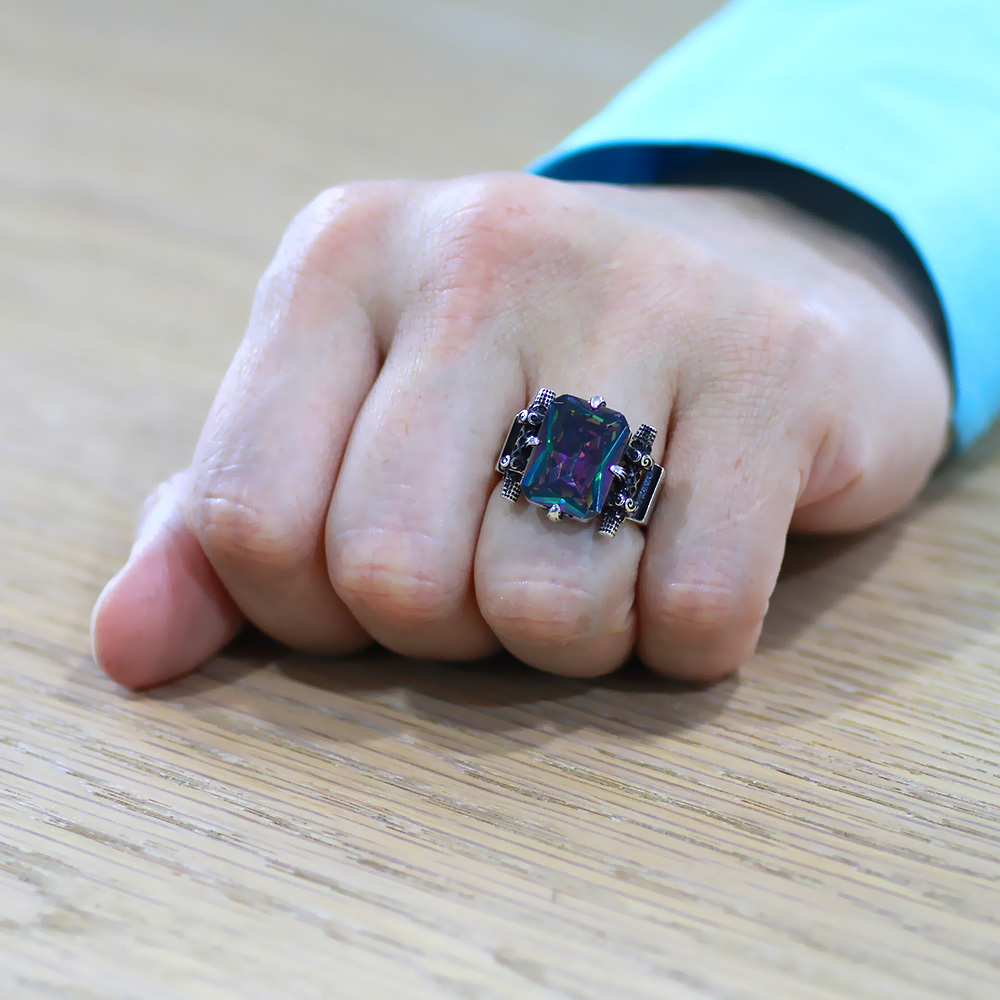 Baget Kesim Mistik Topaz Taşlı 925 Ayar Gümüş Erkek Yüzük