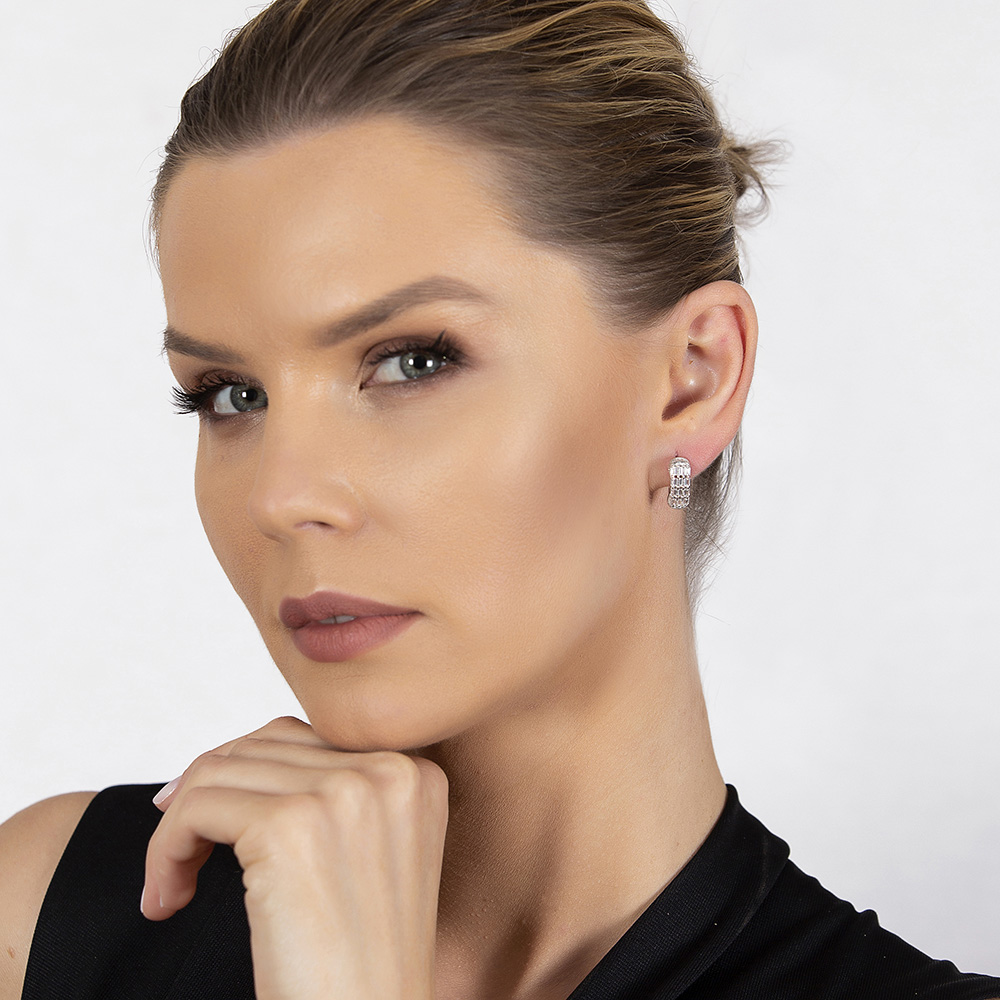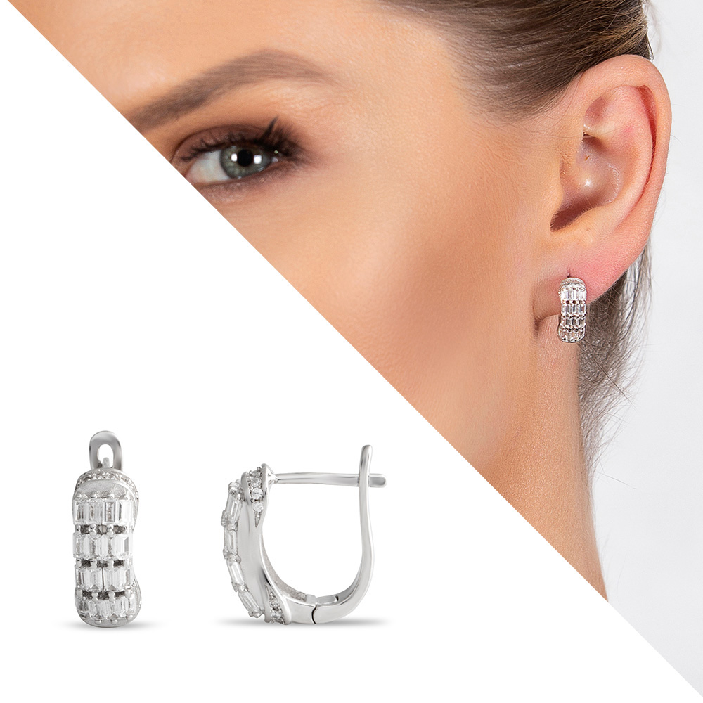Baget Taşlı Zarif Tasarım 925 Ayar Gümüş Kadın Küpe