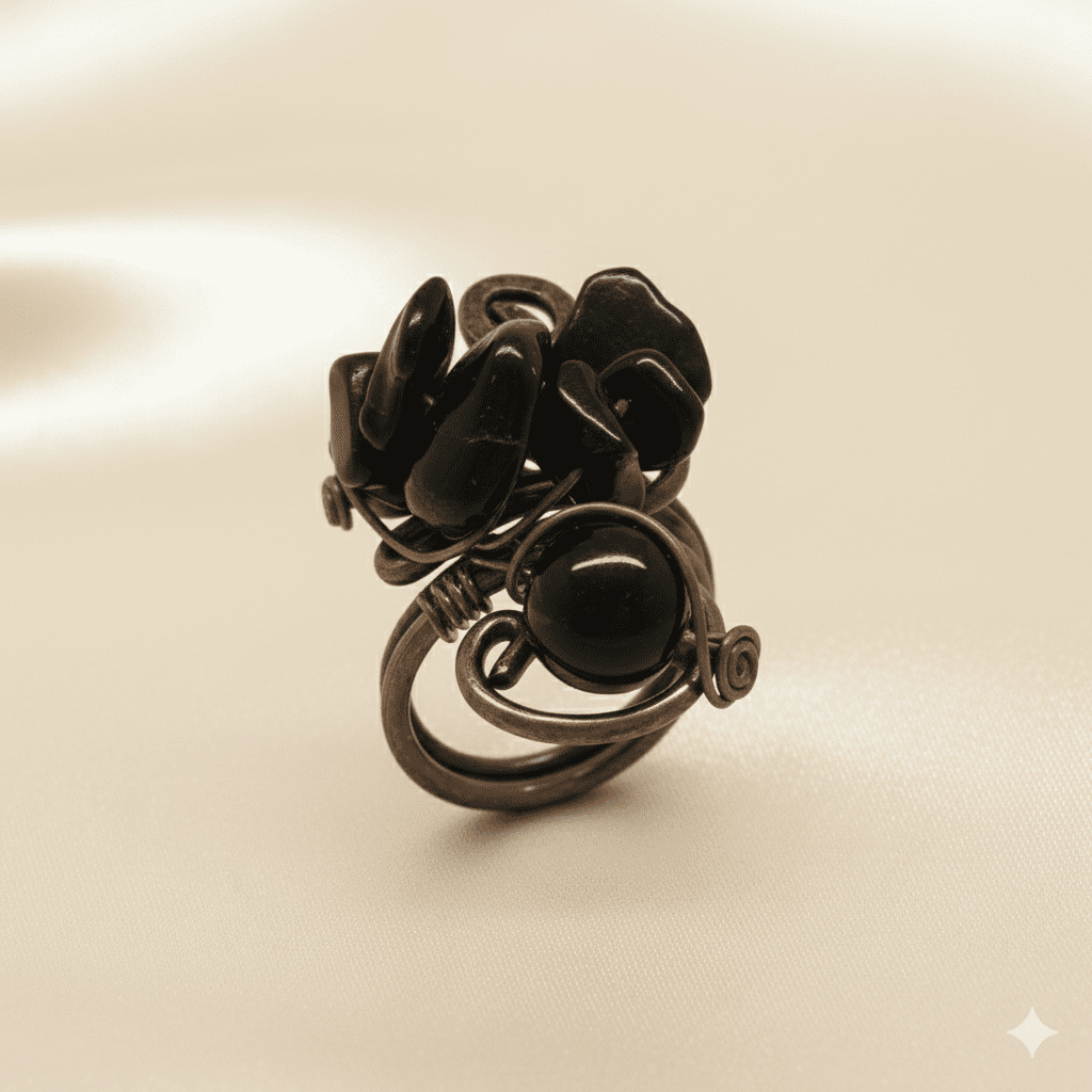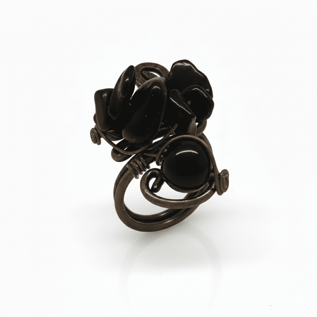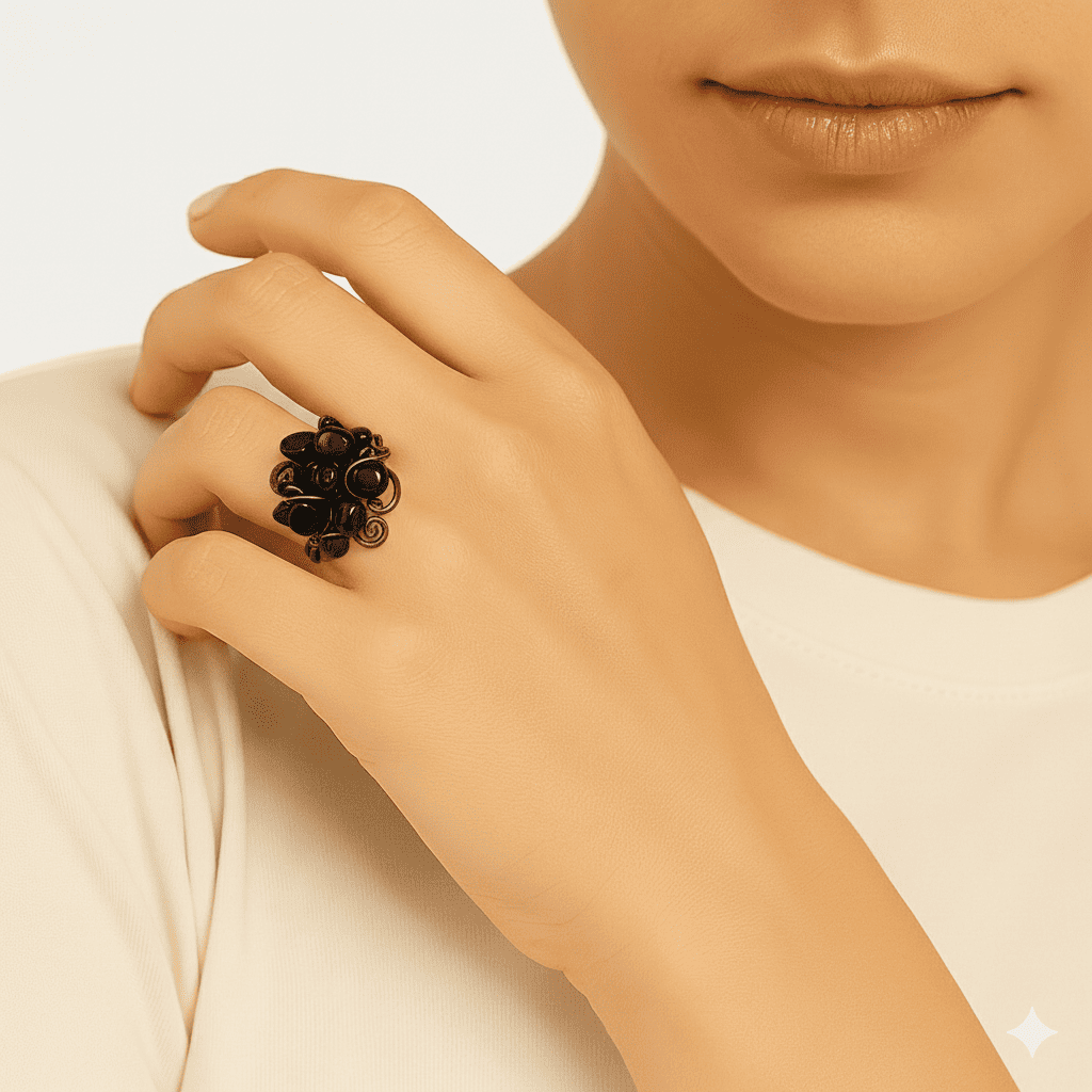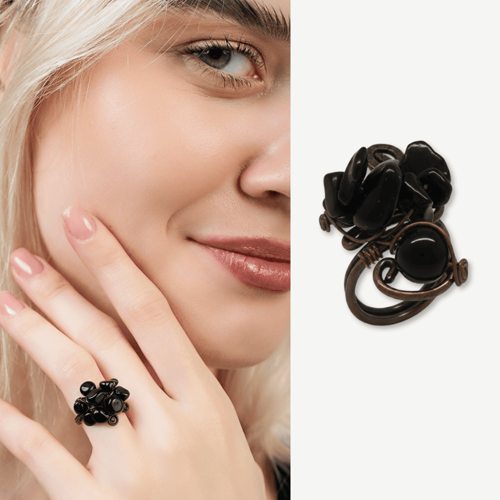 Bakır Bronz Alaşım Kadın Yüzük - Amorf Oniks Doğaltaşlı - Otantik Tasarım - Ayarlanabilir Ölçü