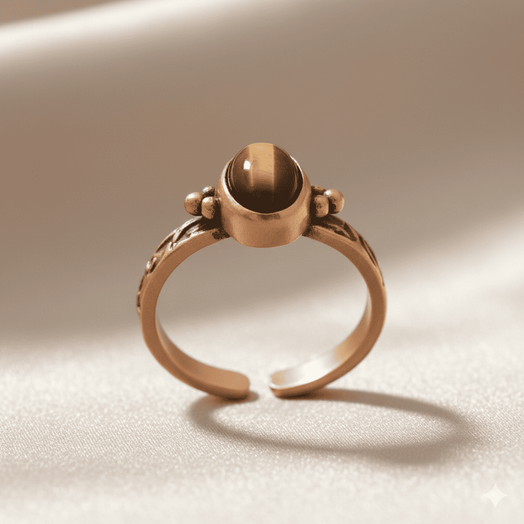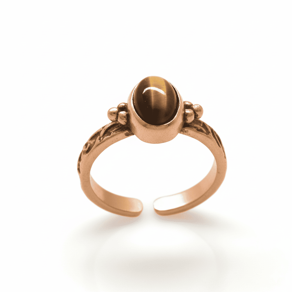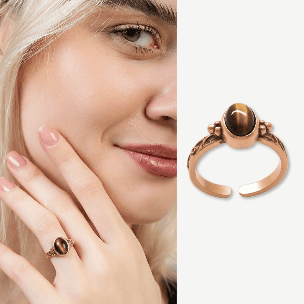Bakır Bronz Alaşım Kadın Yüzük - Kaplan Gözü Doğaltaşlı - Otantik Tasarım - Ayarlanabilir Ölçü