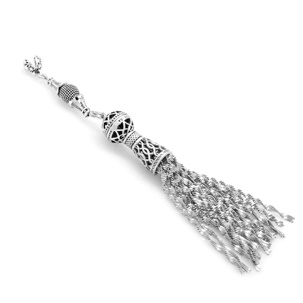 Bakır Üzerine Antik Gümüş Kaplama 16 Zincirli Topuzlu Kararmaz Metal Püskül