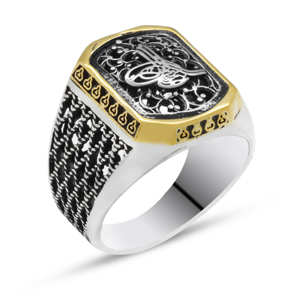 Baklava Tasarım Tuğra Motifli 925 Ayar Gümüş Erkek Yüzük