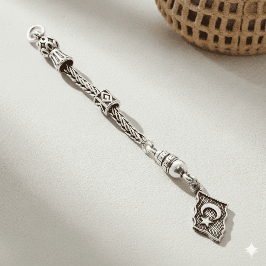 Bayrak Tasarım Kalın Zincirli 925 Ayar Gümüş Püskül
