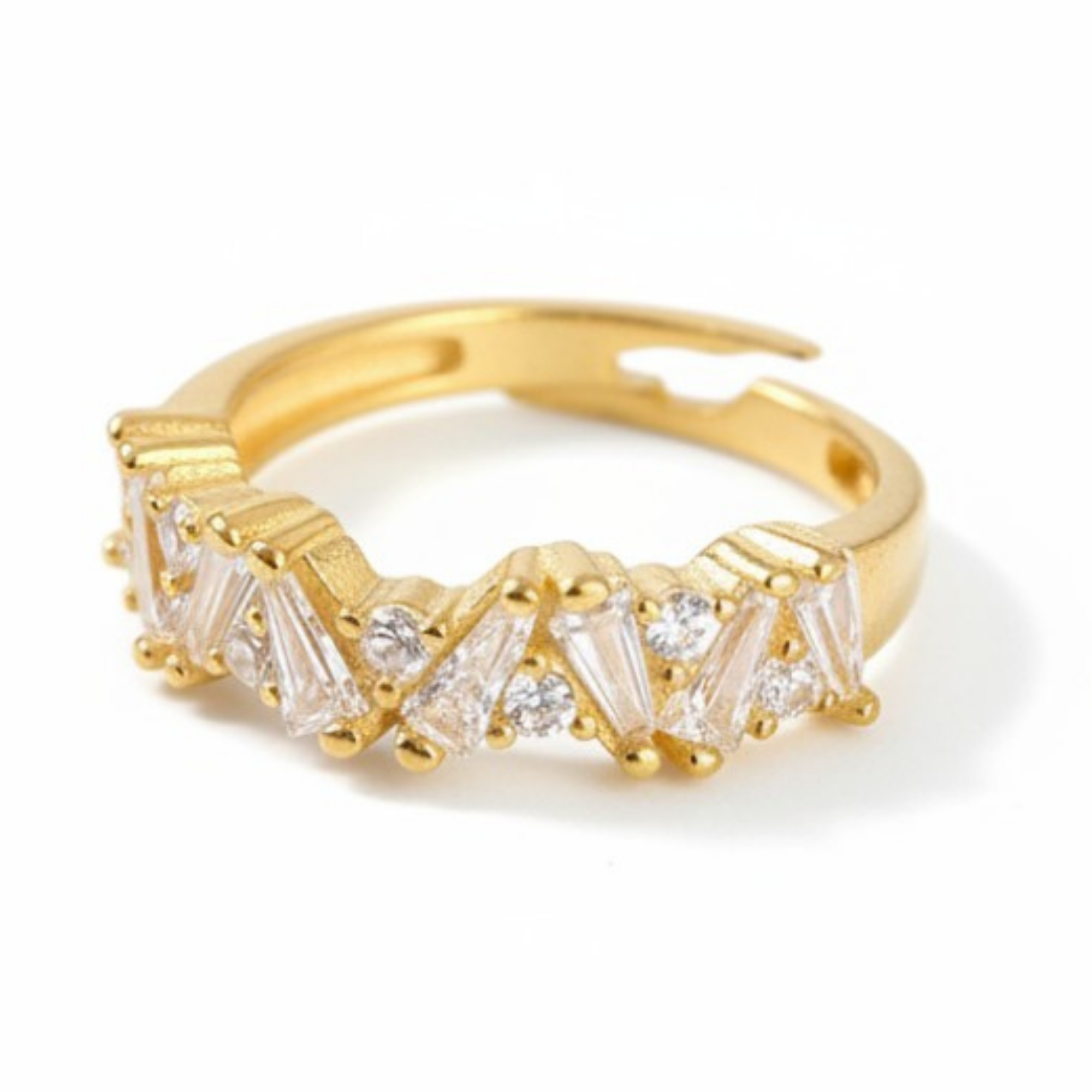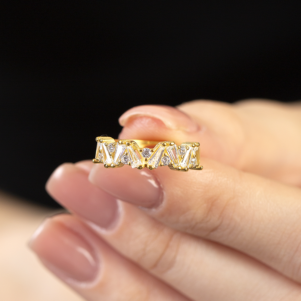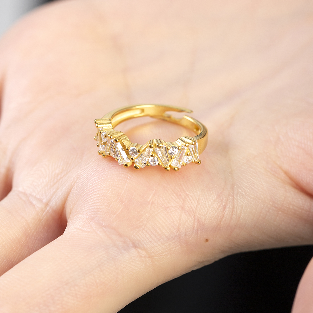 Beyaz Zirkon Taşlı Asimetrik Tasarım Altın Renk Ayarlanabilir Ölçü 925 Ayar Gümüş Kadın Yüzük