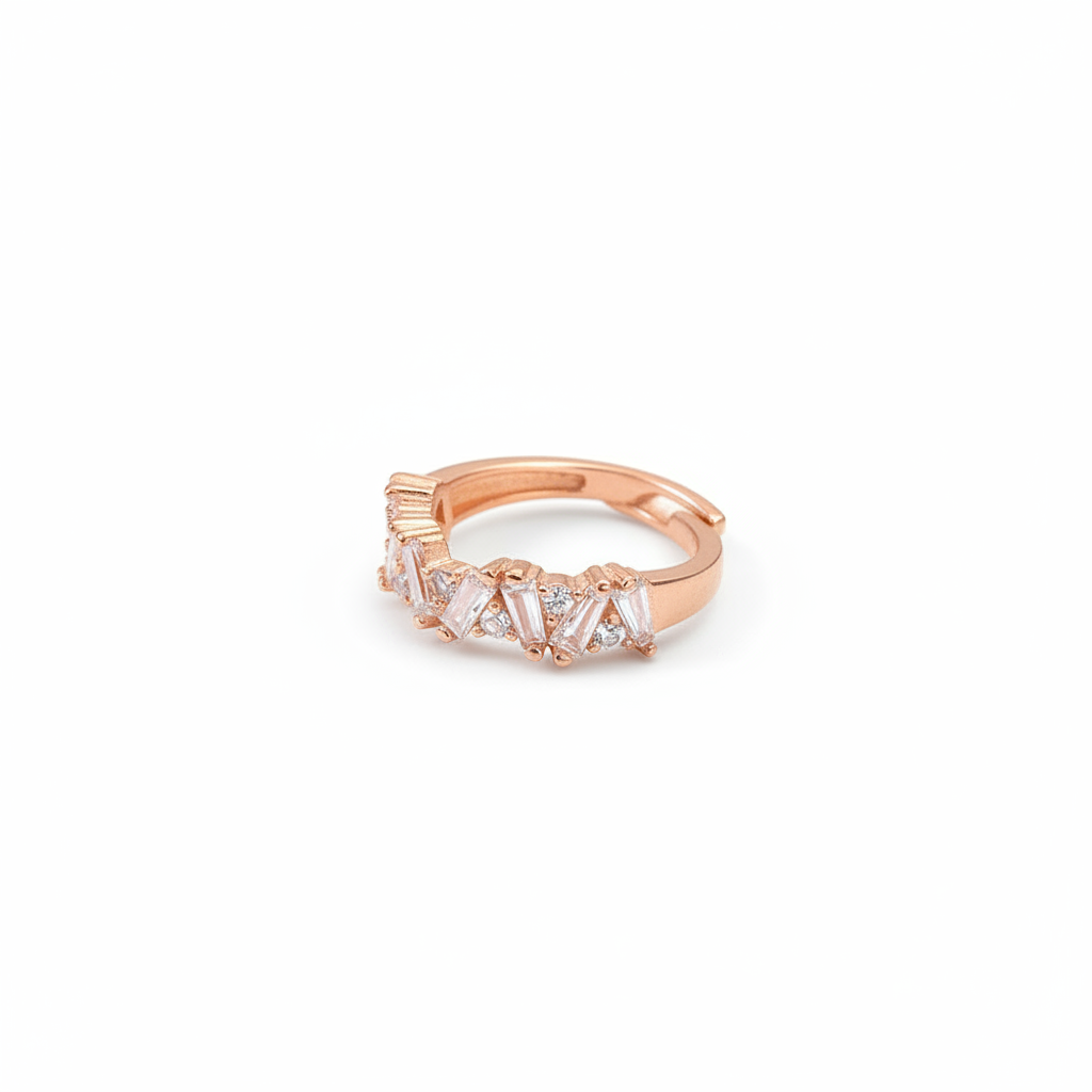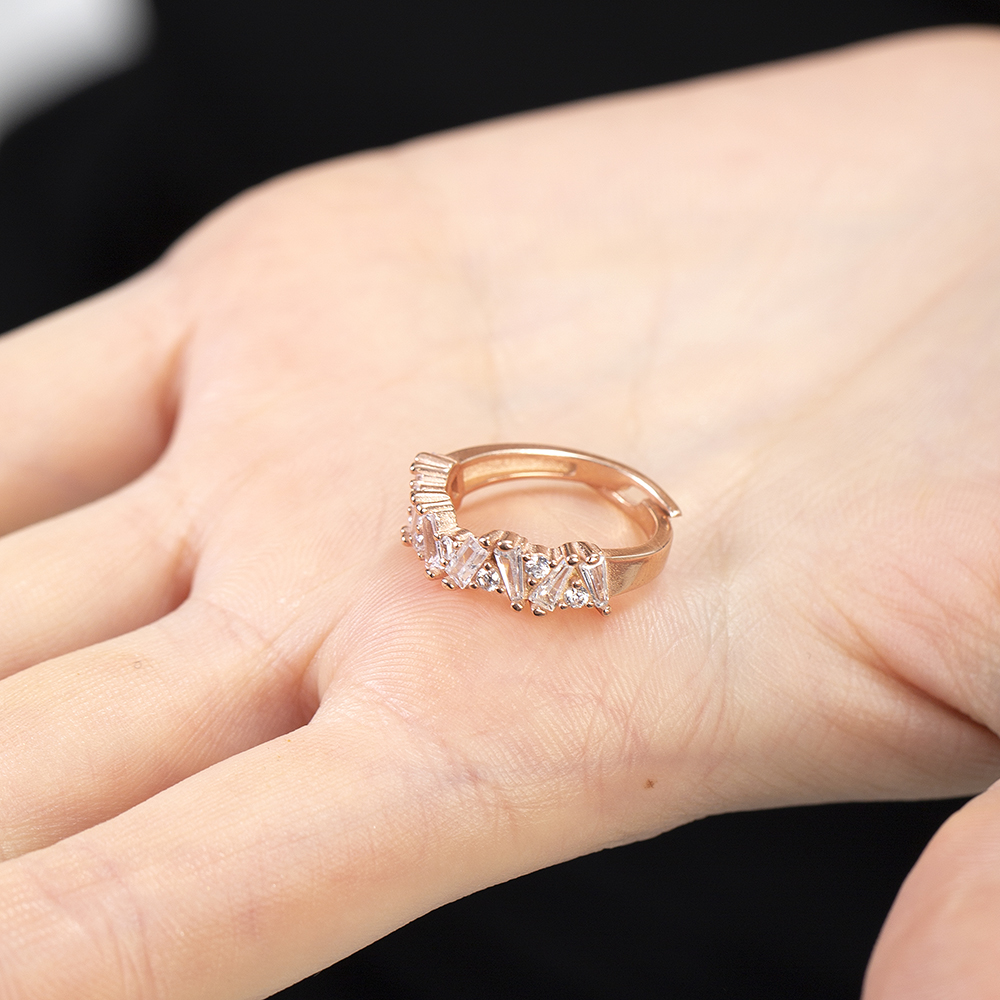 Beyaz Zirkon Taşlı Asimetrik Tasarım Rose Renk Ayarlanabilir Ölçü 925 Ayar Gümüş Kadın Yüzük