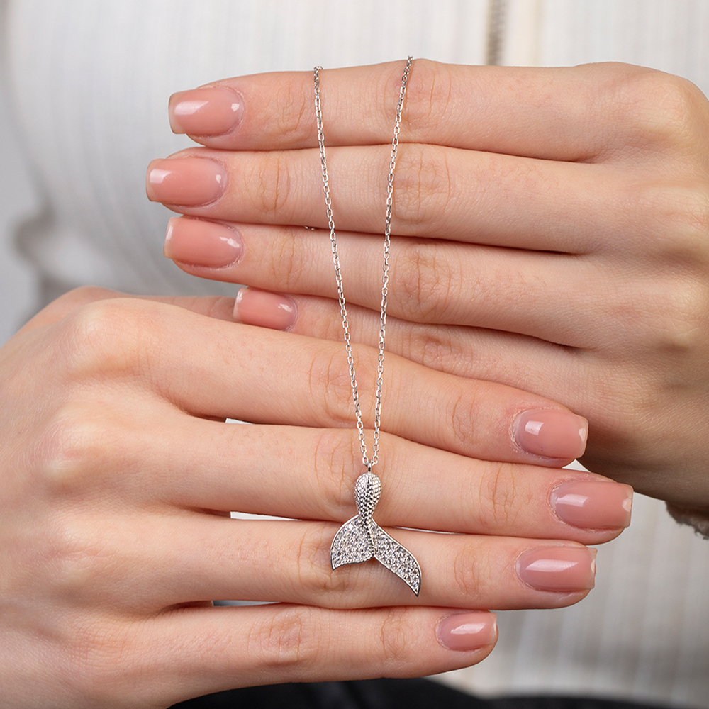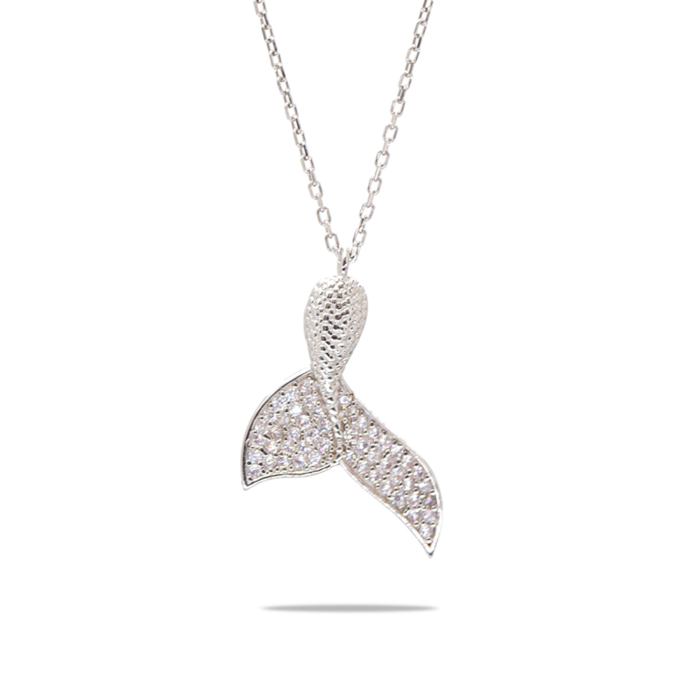Beyaz Zirkon Taşlı Balina Kuyruğu Tasarım 925 Ayar Gümüş Kadın Kolye